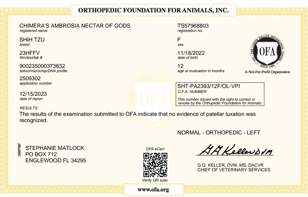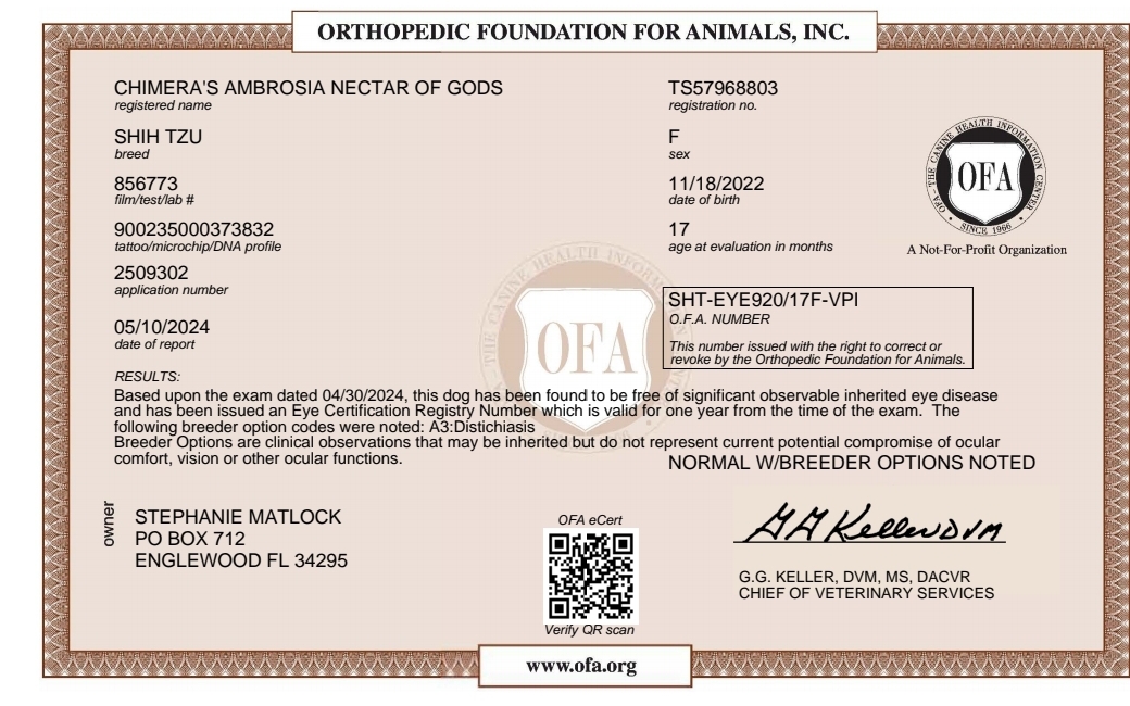 - OFA Health Tested