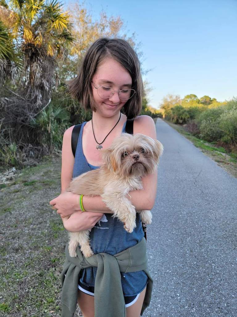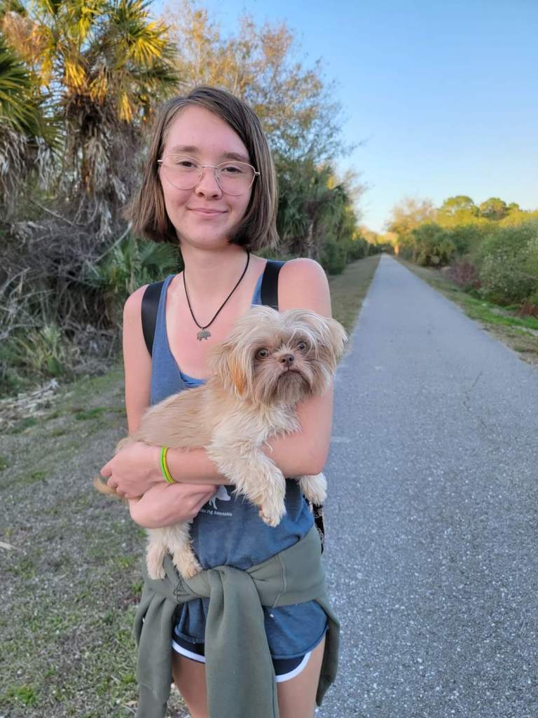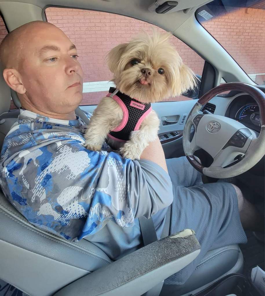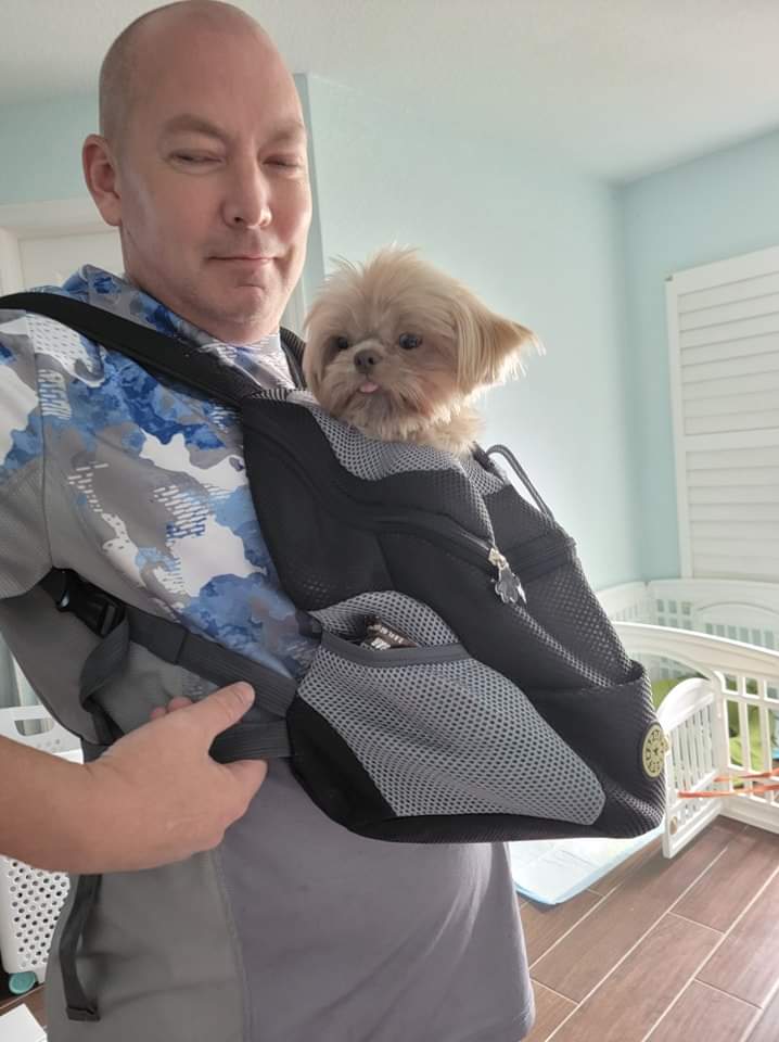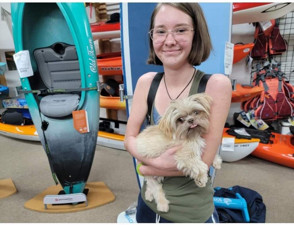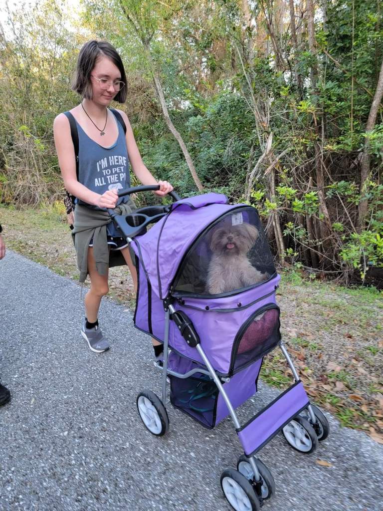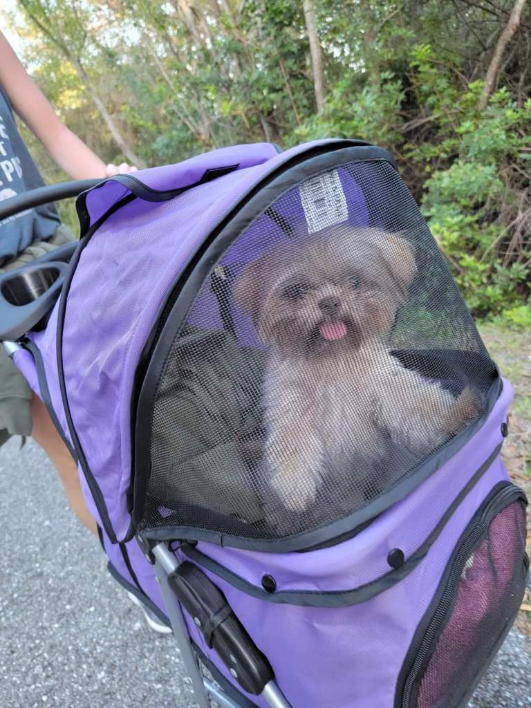 She is great with car rides and likes to cruise around with us but isn’t a fan of walking around in unfamiliar places or for long treks. She’s not as curious about her environment as some of our adventure dogs. She would rather be carried, coddled, or better yet – everyone just stay home with her to play, cuddle, and share ice!