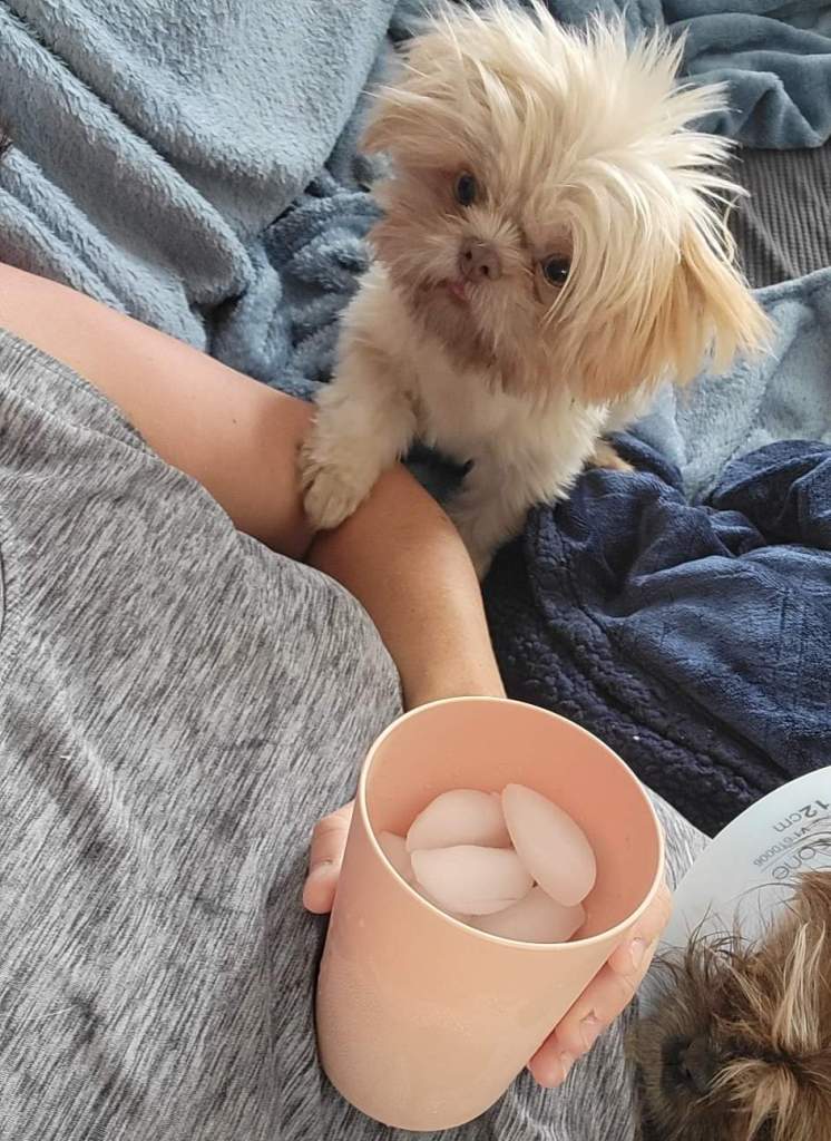 Isabella is very gentle, delicate, yet playful and goofy. She’s one of the funniest dog’s I’ve ever met. She always has us laughing! She’s obsessed with ice and will beg everytime she hears your cup or glass clink when you take a sip. She is very kitten-like in how she plays, bouncy, flinging toys, popping around smacking toys (or hands) with her gentle little paws. She is a homebody.