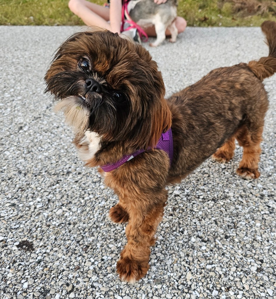 Khaos is on the larger size range of our dogs. She is a well balanced, solid girl. She has a lovely Shih Tzu head. Perfectly round skull, perfect nostrils, perfect eyes, perfect underbite.