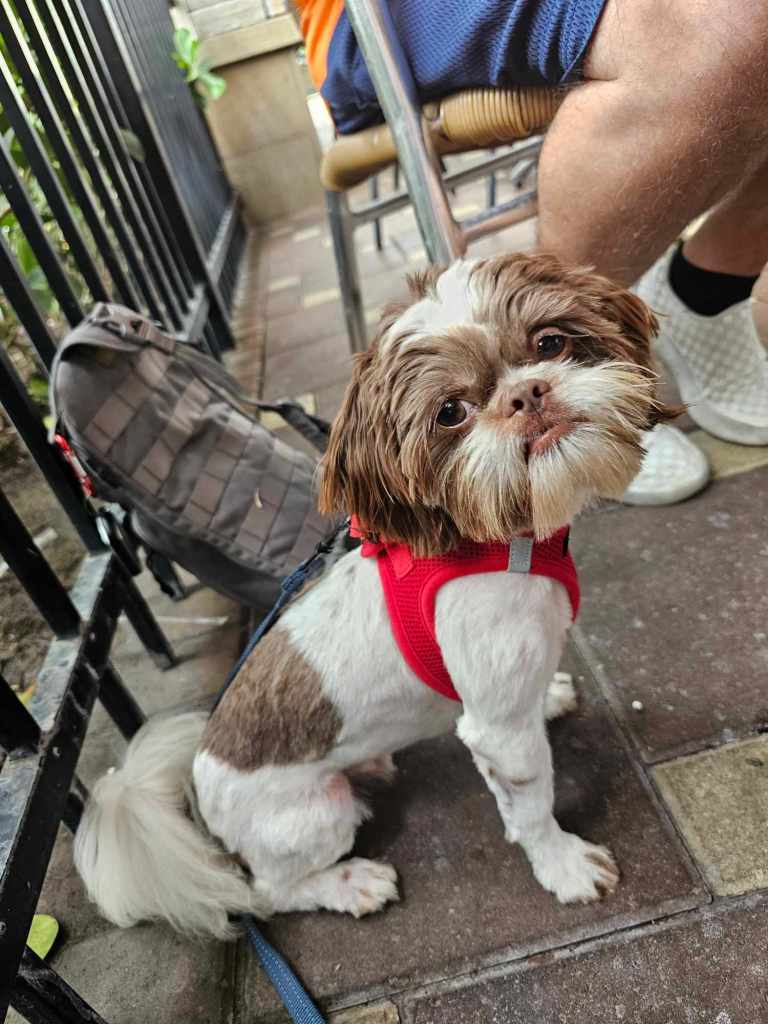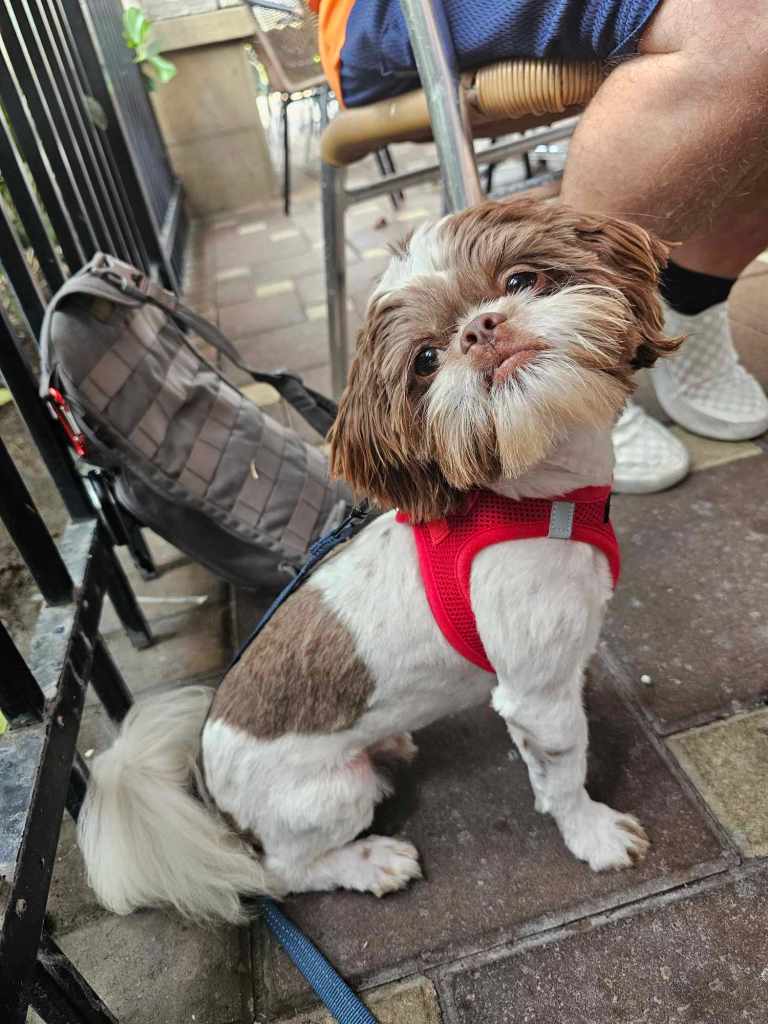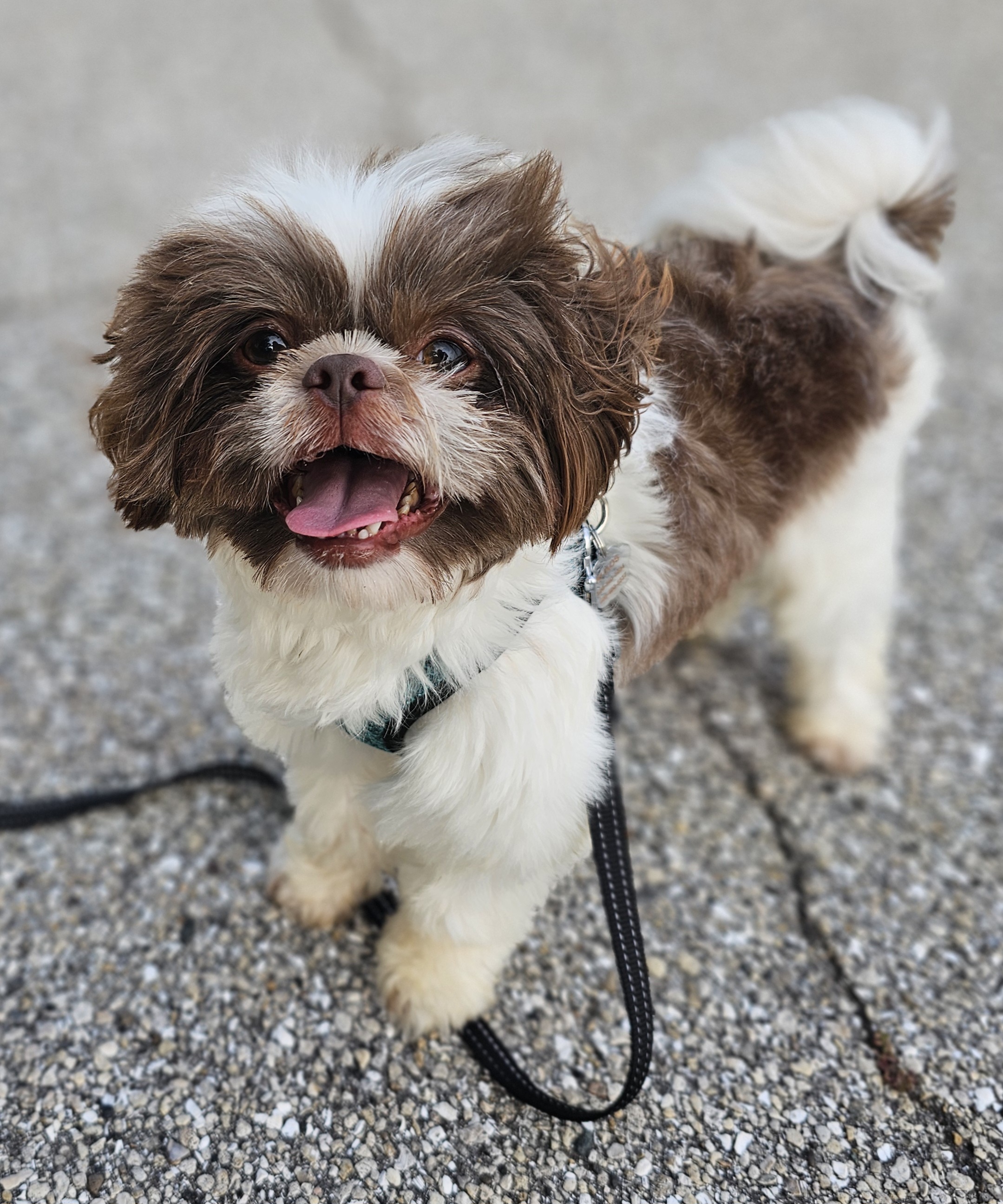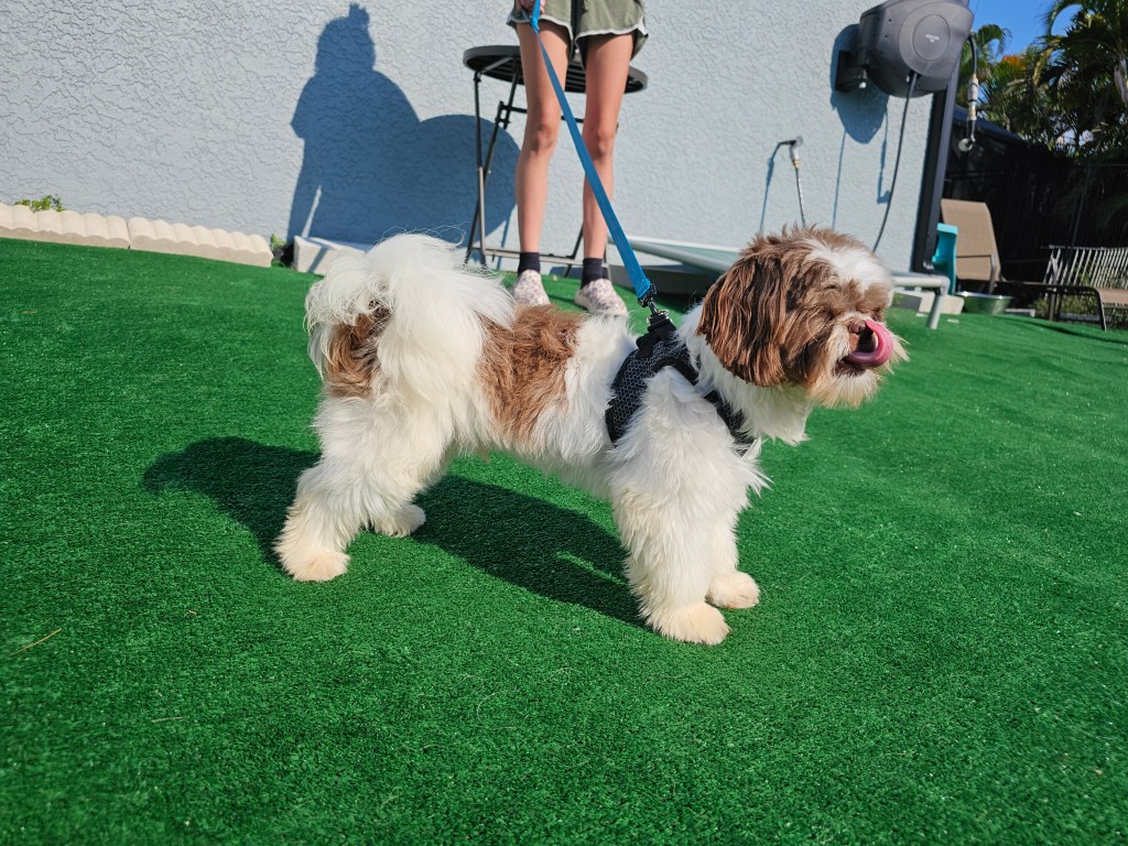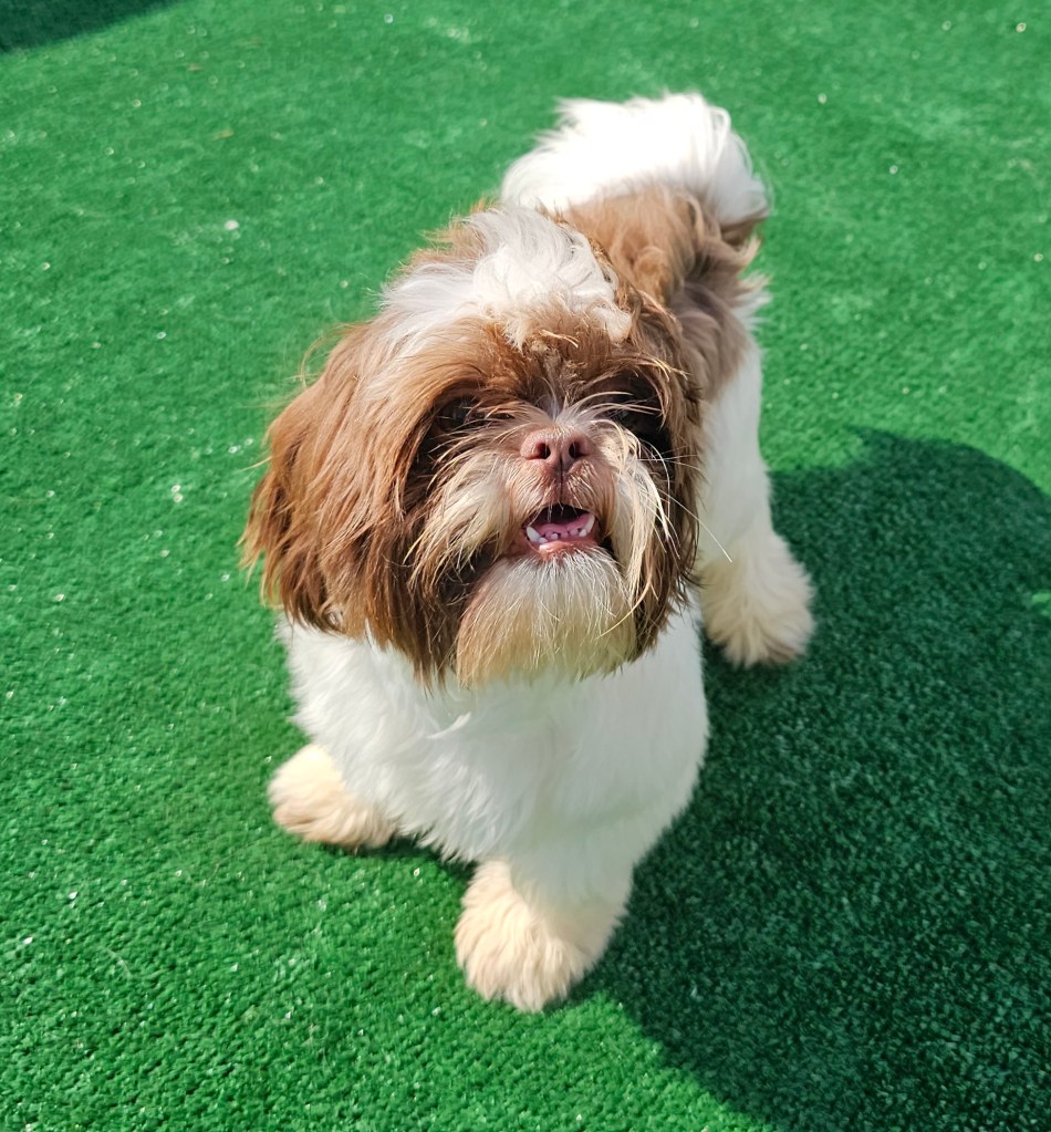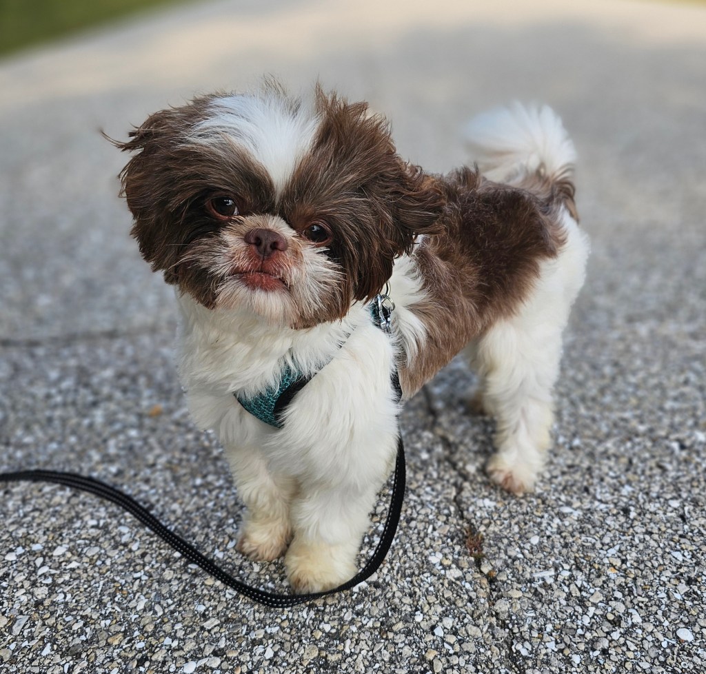 Maui is a great little guy. He’s lean and petite built. He does have slightly longer legs making him a little taller, although he is not “bigger” in weight. He is right at the low end of the AKC Breed Standard size of 9 – 16 lbs. He has great breed features. A nice coat, great eyes, sweet expression, gentle nature, outgoing temperament, nice open nostrils, no breathing issues, he’s athletic and healthy. He brings a lot of life to the party here at Chimera Shih Tzu!