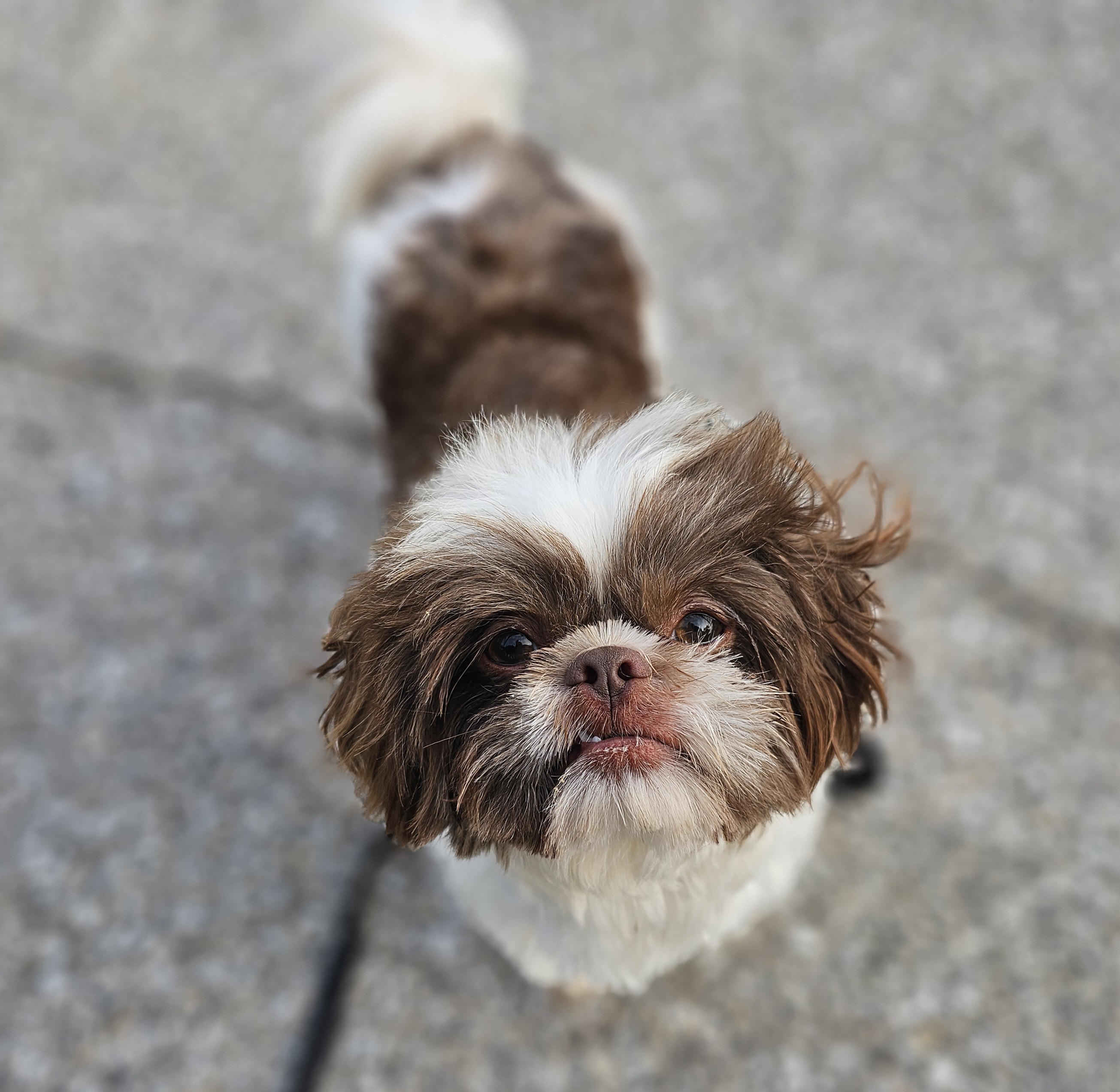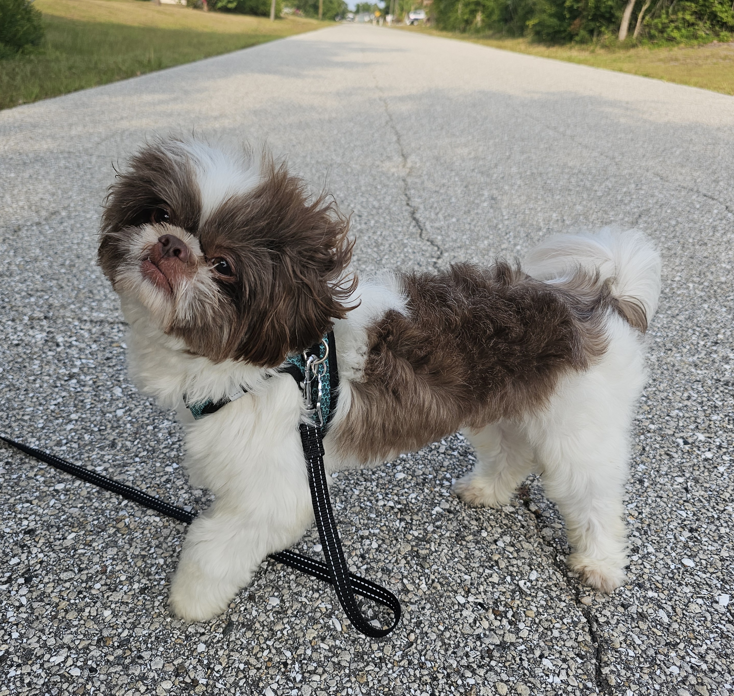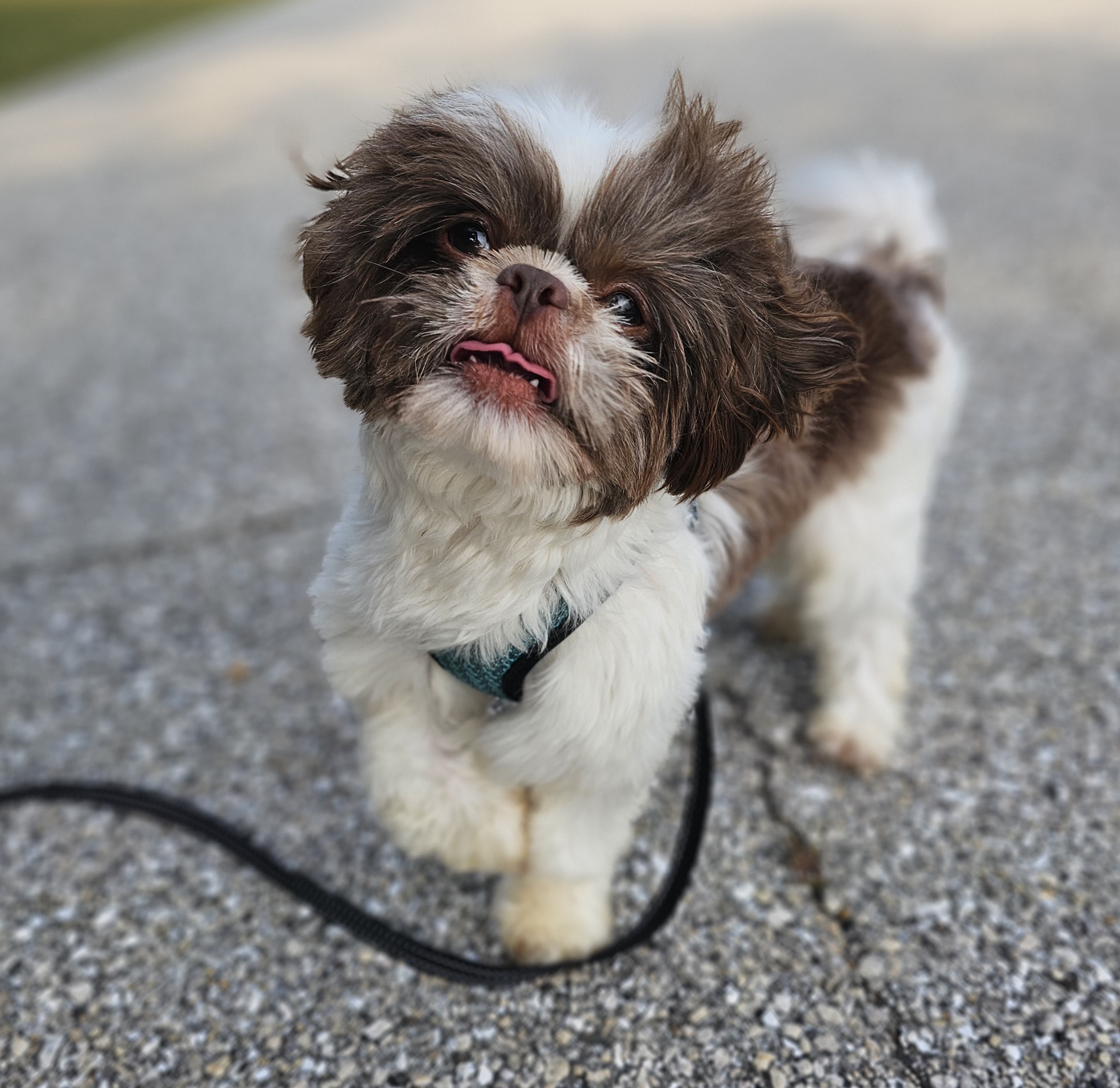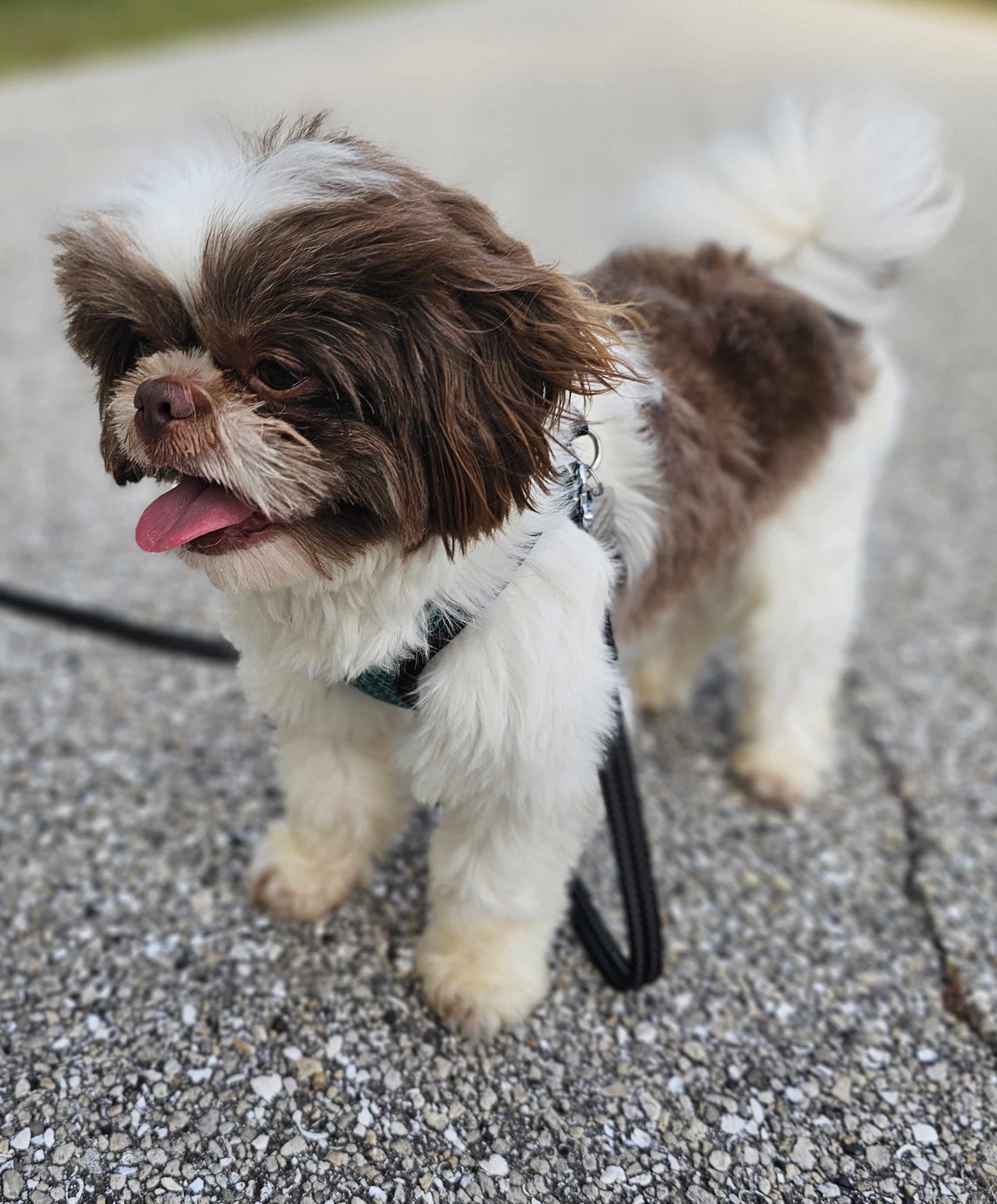 Maui is a great little guy. He’s lean and petite built. He does have slightly longer legs making him a little taller, although he is not “bigger” in weight. He is right at the low end of the AKC Breed Standard size of 9 – 16 lbs. He has great breed features. A nice coat, great eyes, sweet expression, gentle nature, outgoing temperament, nice open nostrils, no breathing issues, he’s athletic and healthy. He brings a lot of life to the party here at Chimera Shih Tzu!
