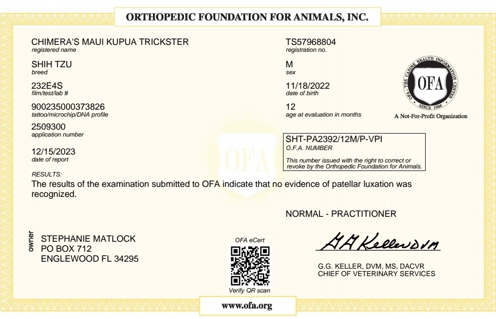 - OFA Health Tested