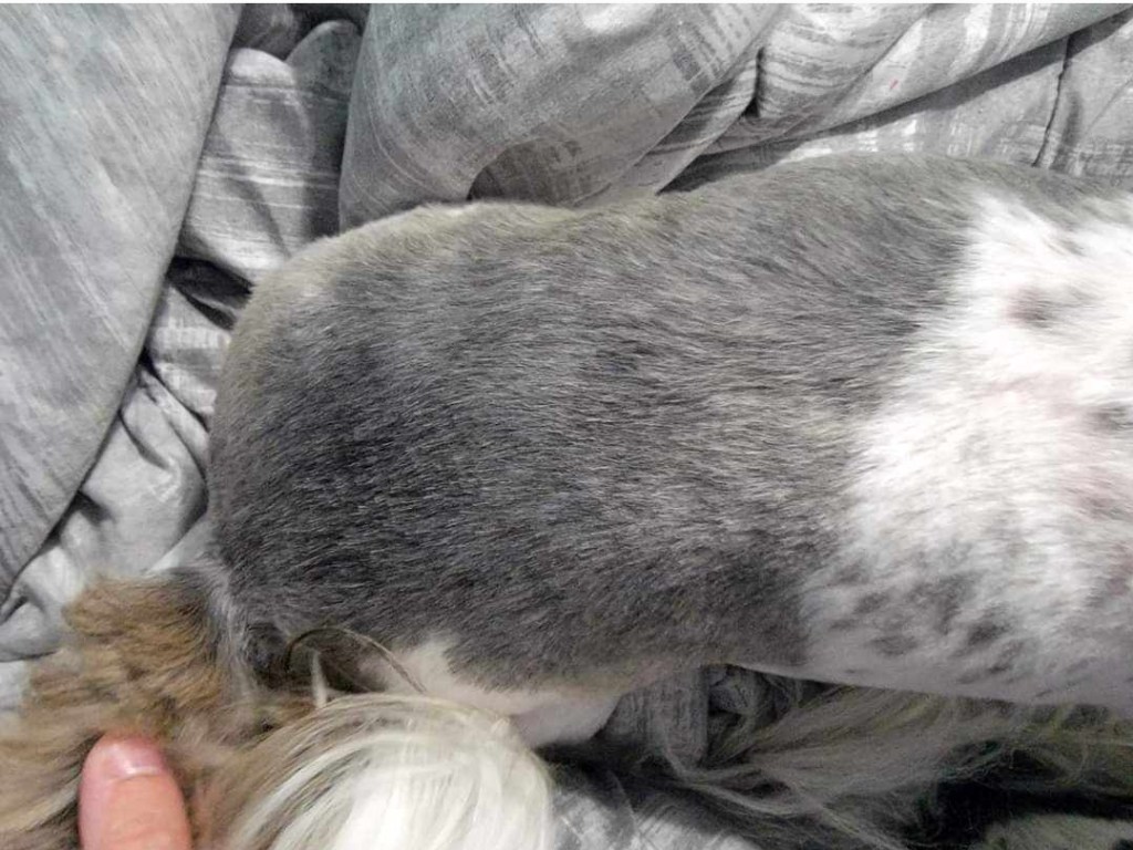 She can be slightly dominant with other dogs when there is overexcitement. She also takes the responsibility of caring for her emoji squeakies very serious. If another dog approaches while she has her Squeaky she hunkers down over it to protect it. Silly girl!