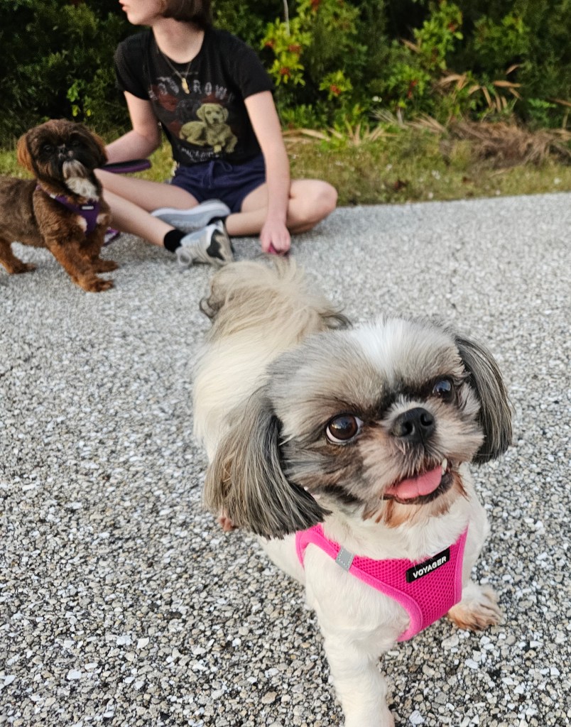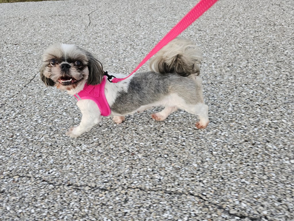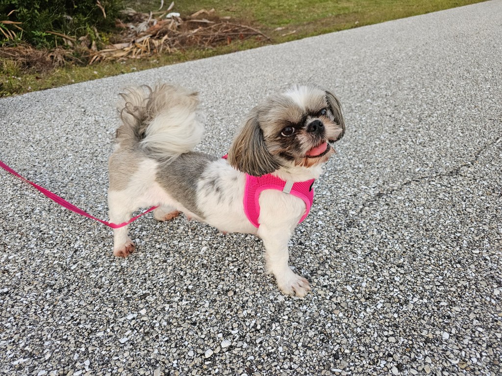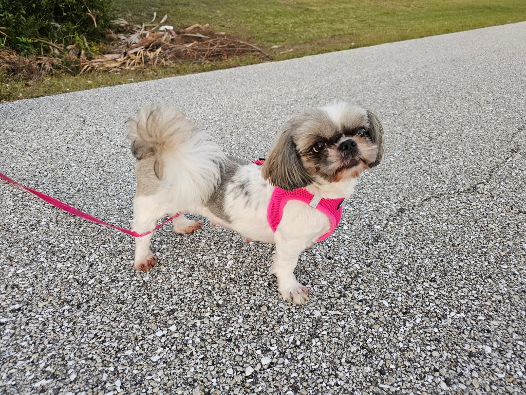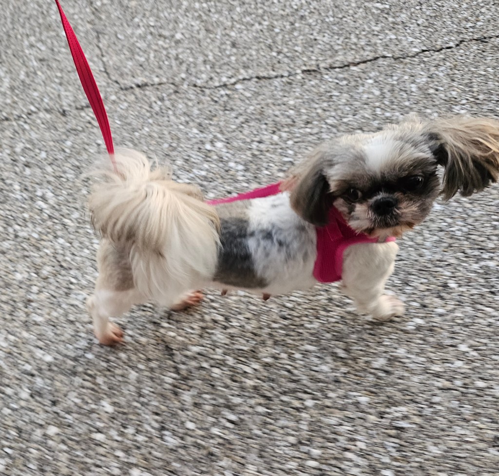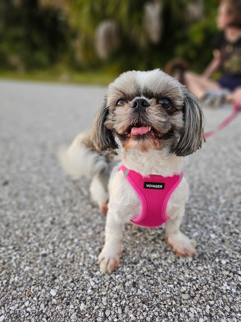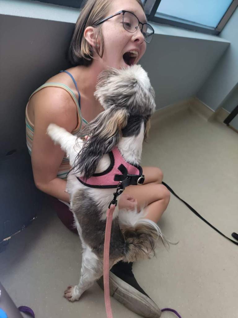 This girl so much fun. A super love bug, gives lots of happy excited kisses, hugs, LOVES toys, loves squeaky things. She loves carrying things around in her mouth and has to show them to us (shoving her toys in our face, like she’s “sharing” them?? Haha!). She’s a very easy going, friendly, loving baby. We are really enjoying her. Super cute too with such expressive eyes! She’s easy to groom because she’s such a good girl, has a great coat, and a perfect face that’s easy to shape the hair around.