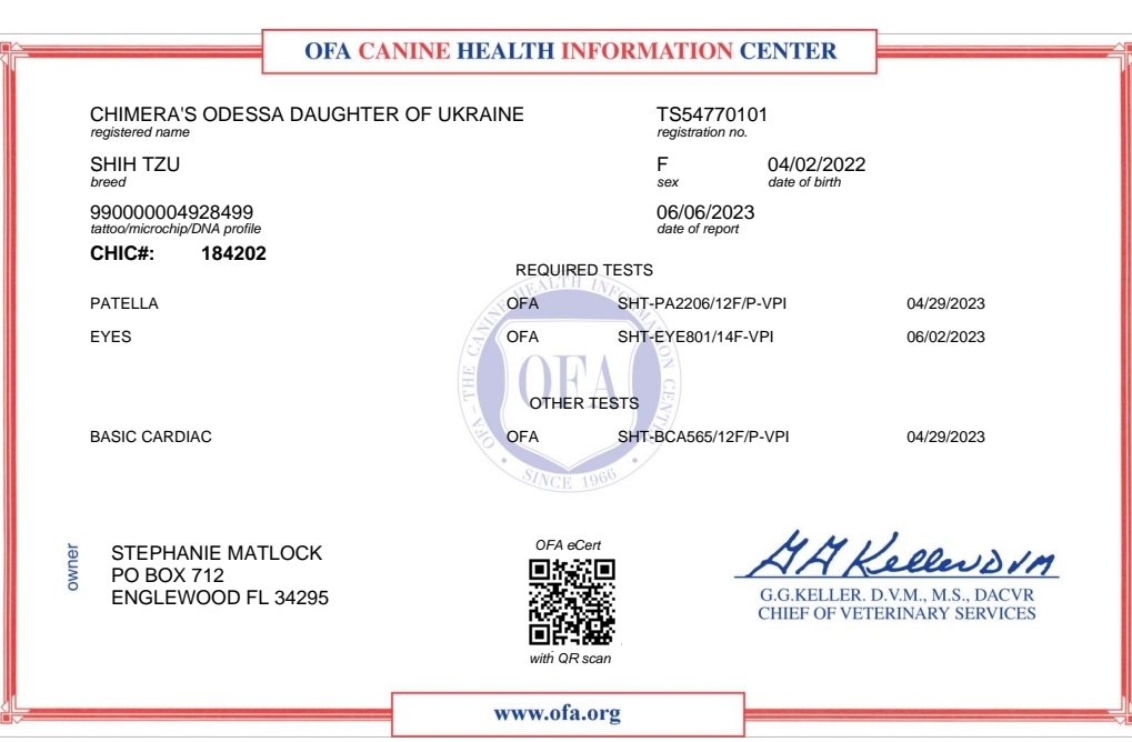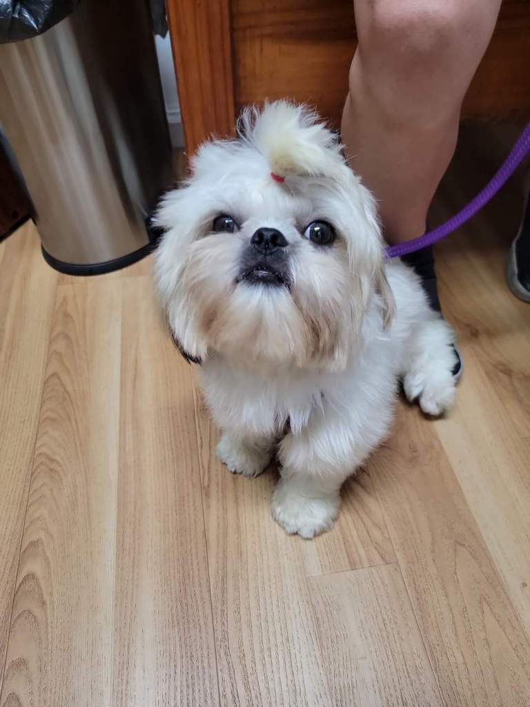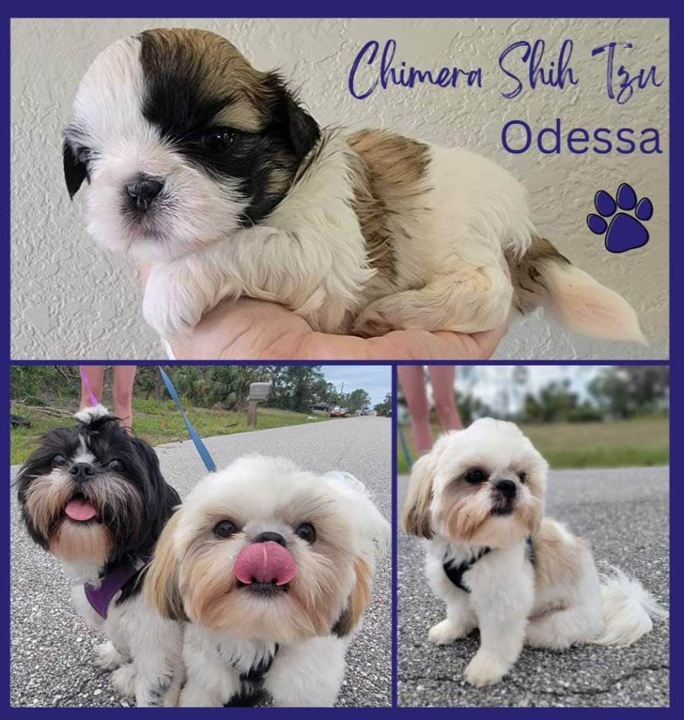 Odessa is an AKC Registered gold & white parti Shih Tzu. She is from our imported Ukraine & Russian international show champion lines. Cassandra is the daughter of Kikimora & Morpheus. Odessa is always happy with a big smile.