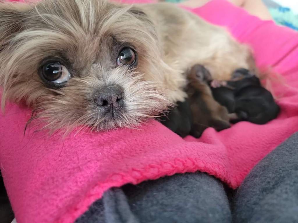 Pandora is confident and adventurous. She loves taking trips and is always down for a girl’s day out of family adventure. Whether it’s kayaking, hiking, running errands, or socializing puppies, she’s happy to come along.