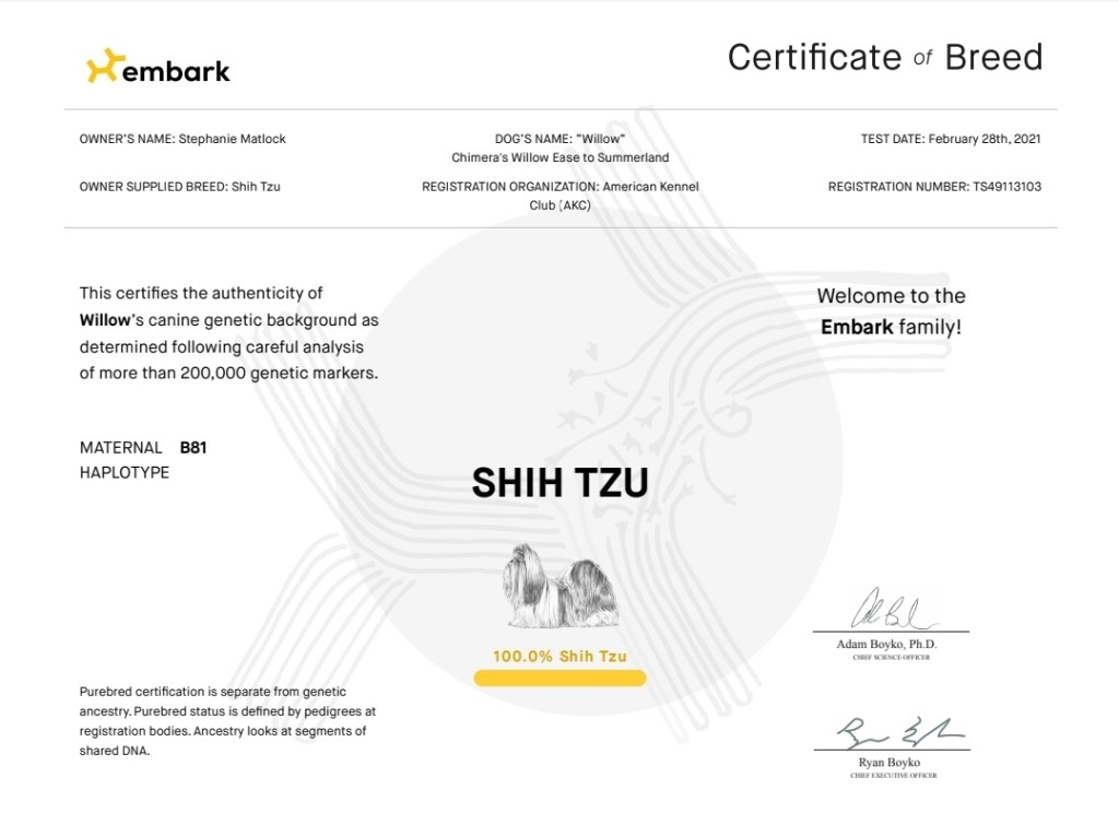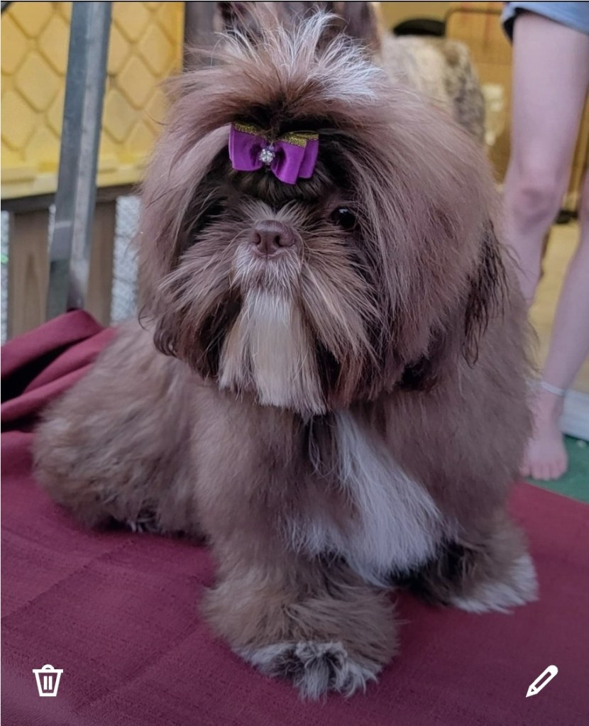 Willow is an AKC Registered liver Shih Tzu with a chocolate color to her coat. She has beautiful brown eyes and a thick beautiful coat. Willow is the life of the party! She is one of the most affectionate, outgoing, social dogs.