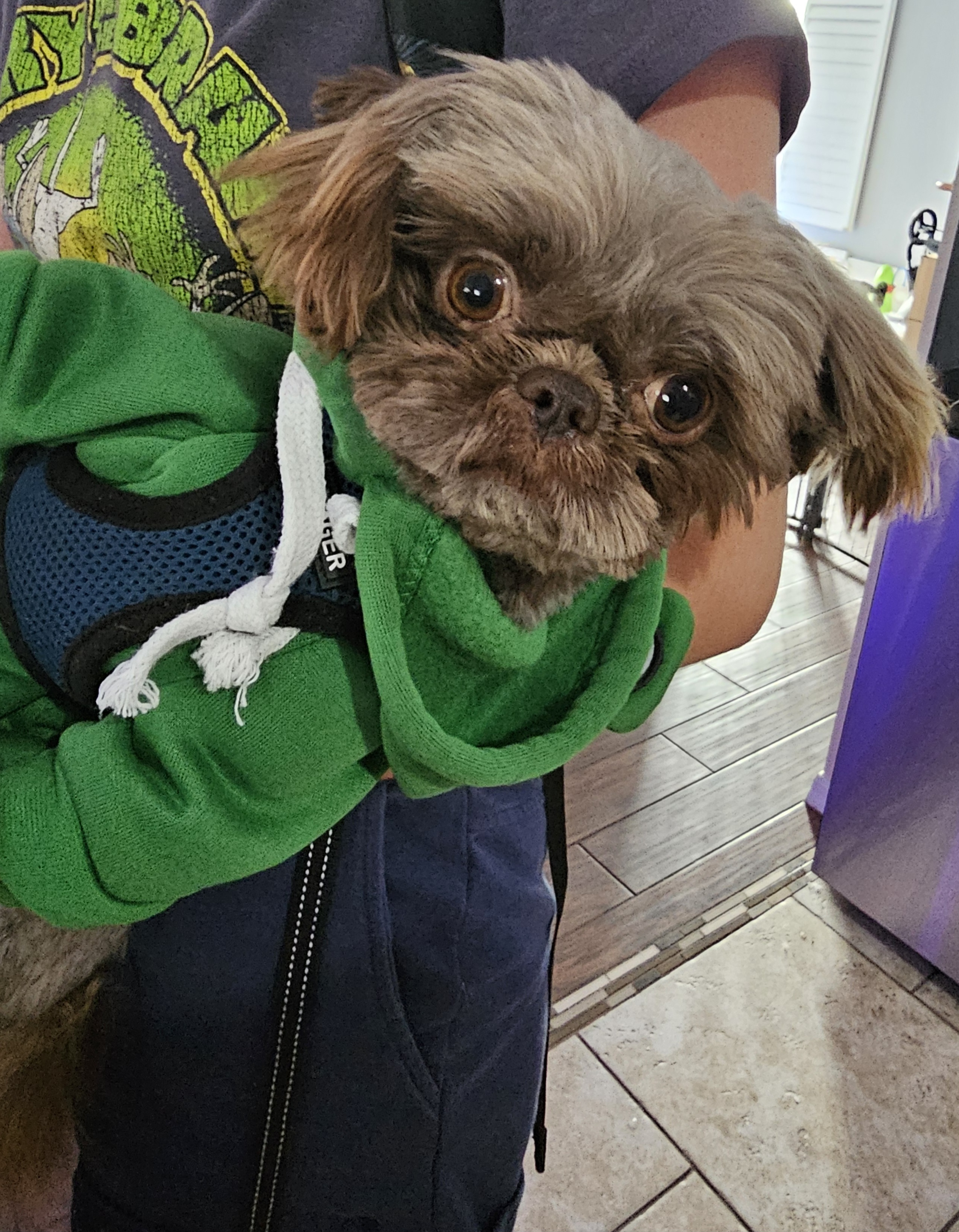 Bounty is a gentle natured, tender sweet, baby boy. He is very mild mannered and polite. He’s a momma’s boy and is perfectly content being carried around the house or shopping, like a puppy purse!