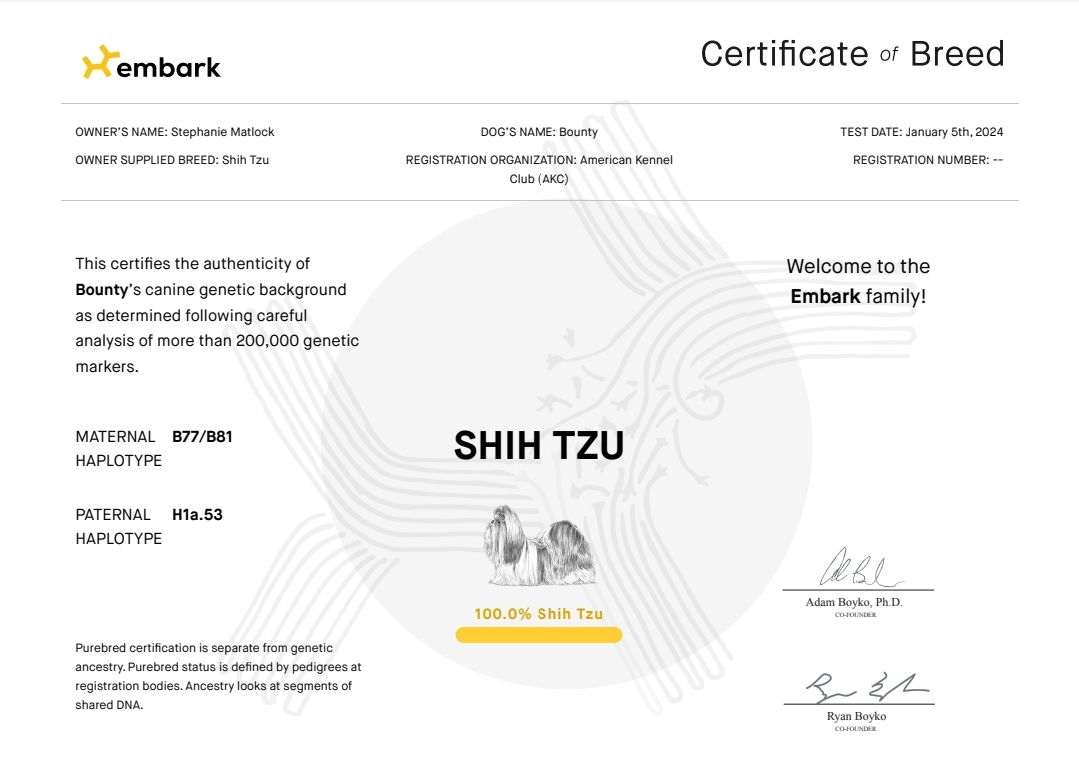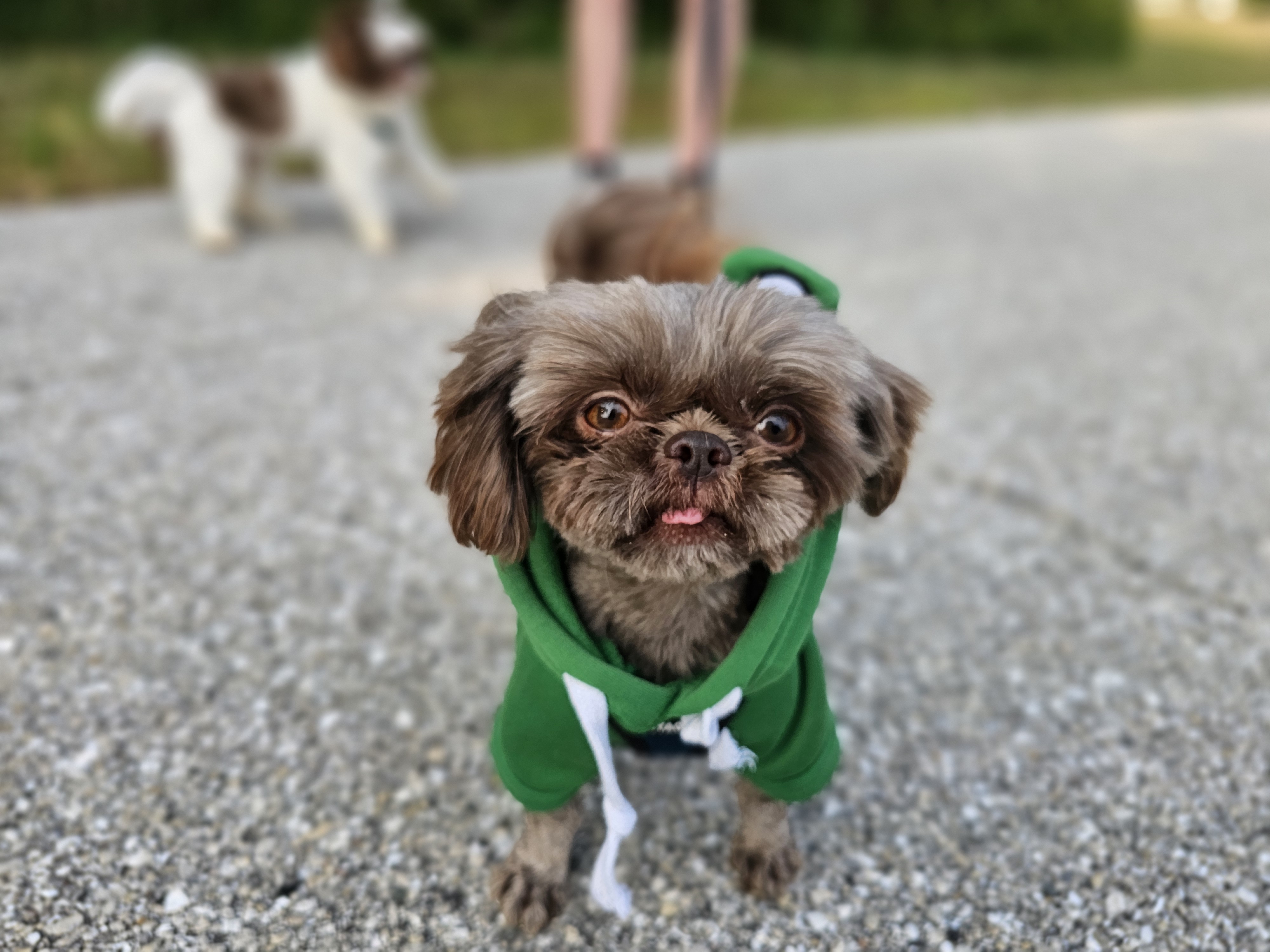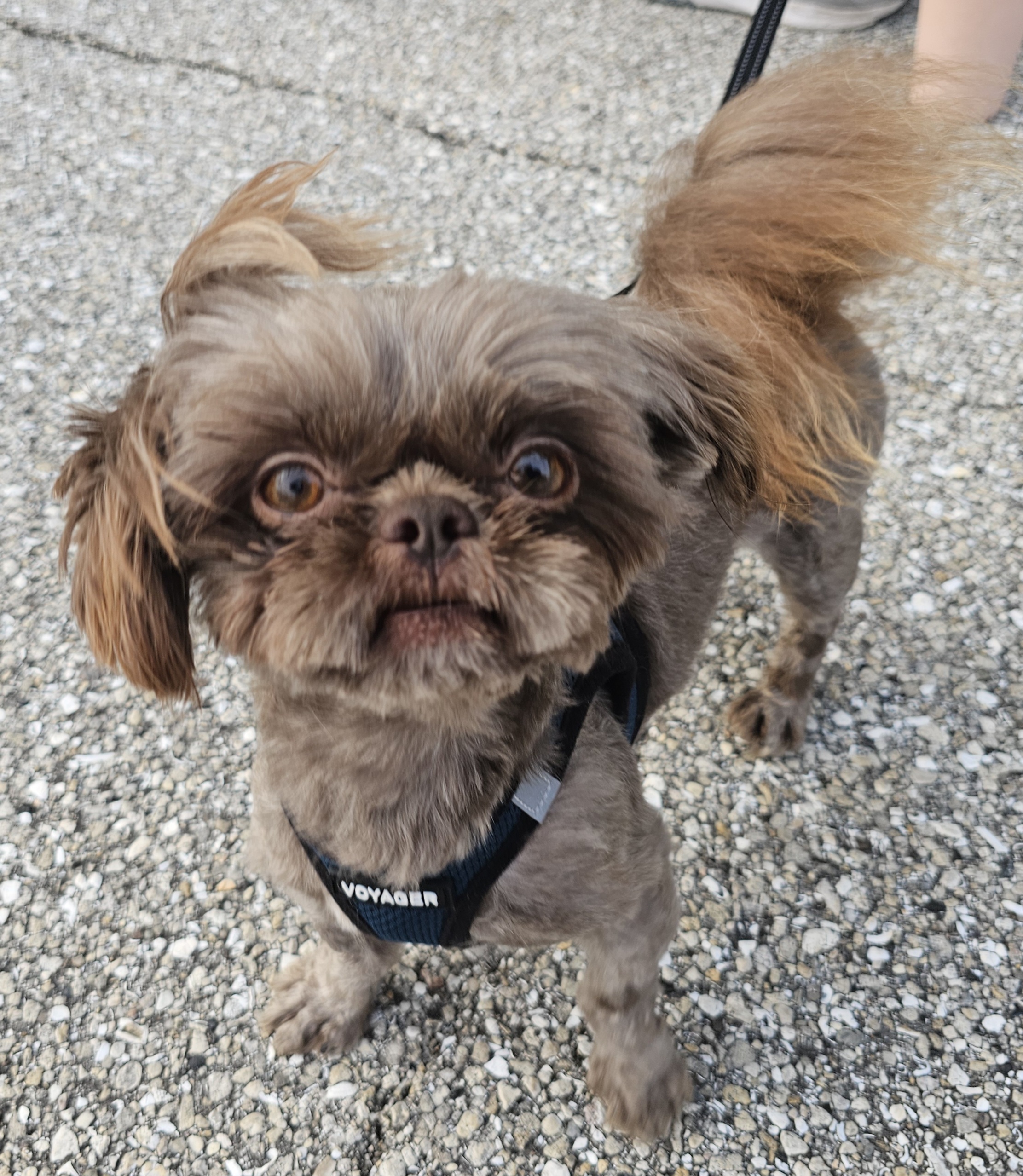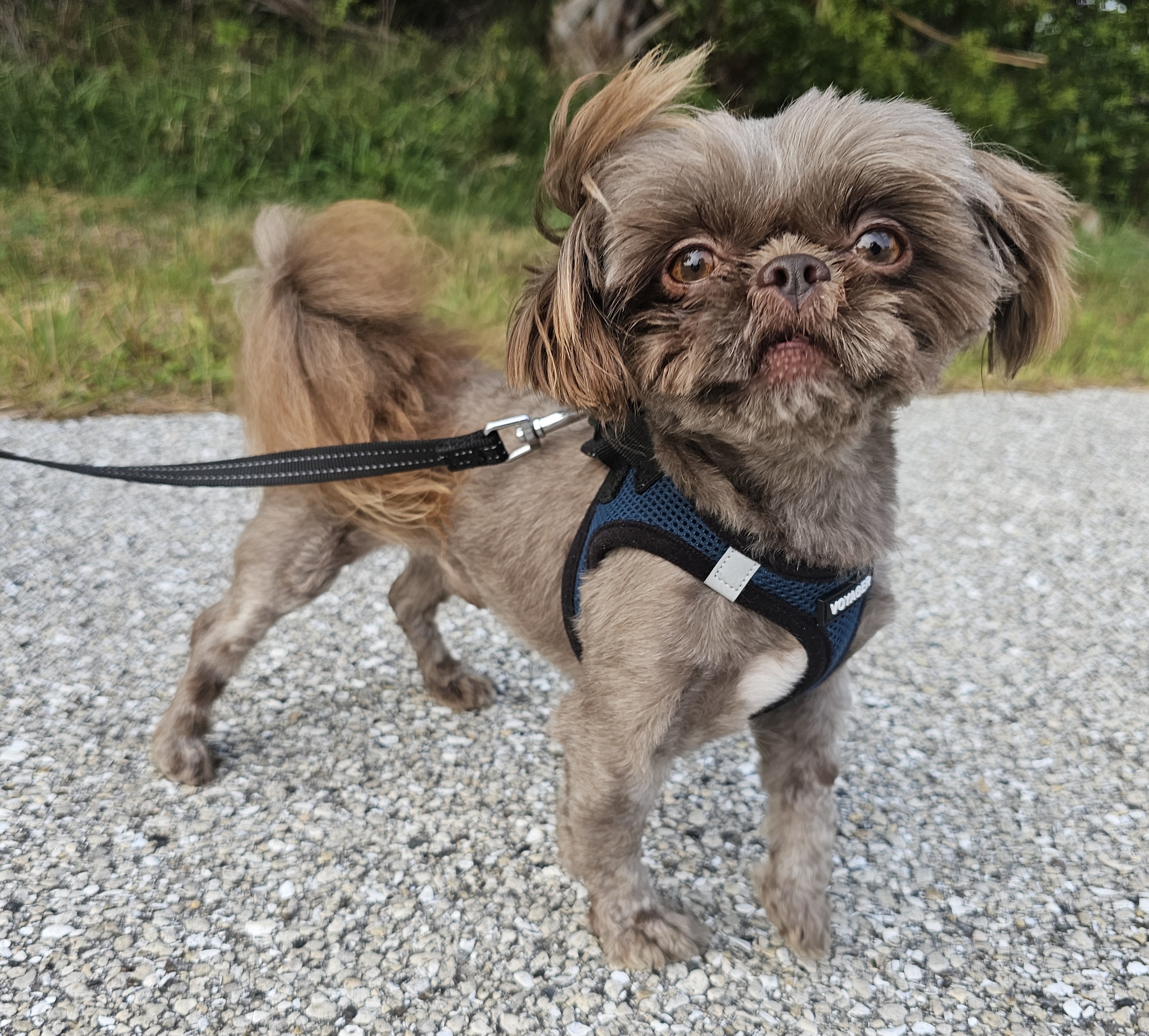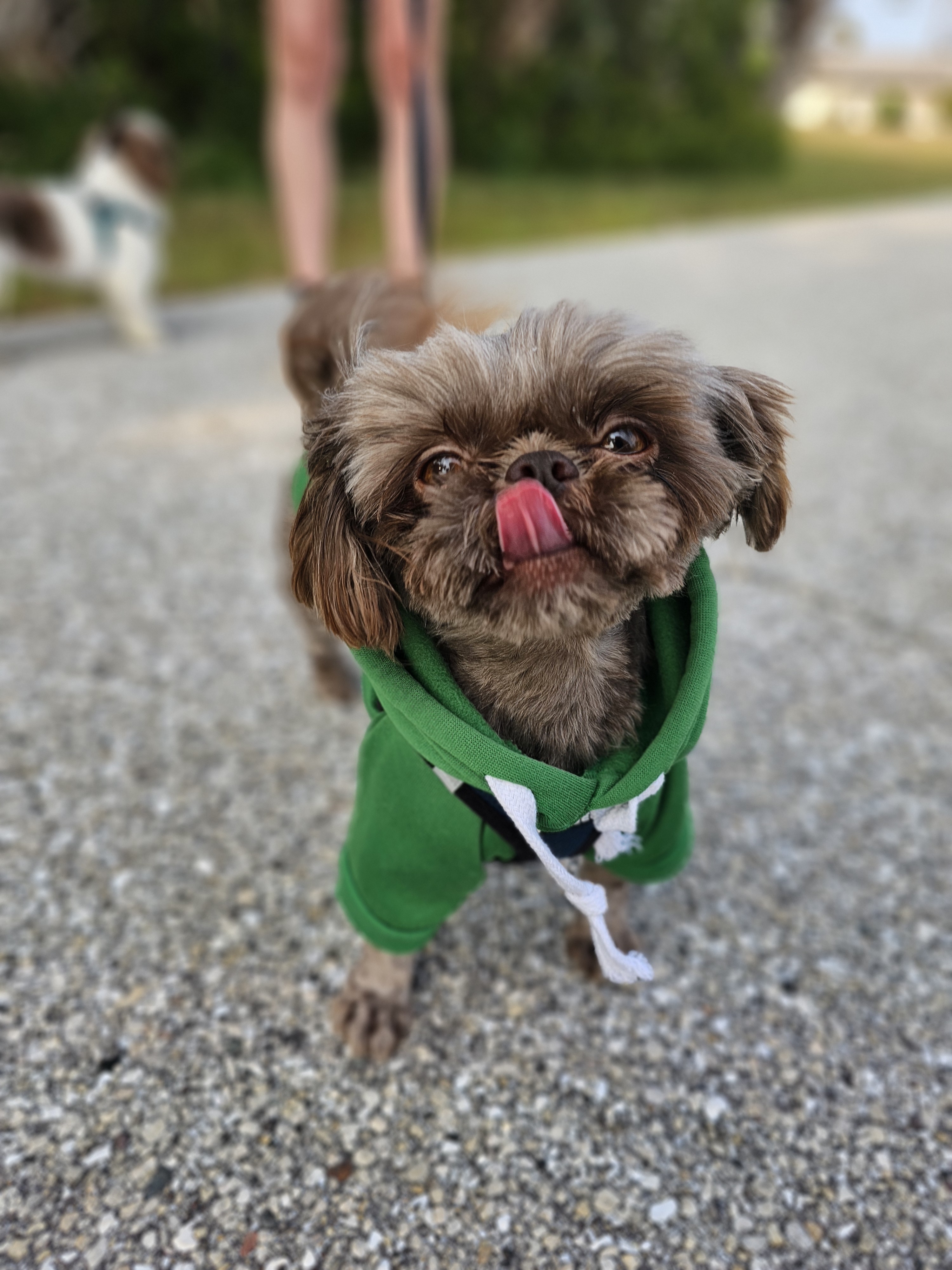 Bounty is a tiny little Shih Tzu, weighing in a couple pounds below the AKC Breed Standard weight of 9-16 lbs. He has a nice coat, a nice proportional body, a small frame, beautiful eyes, and open nostrils for good breathing.