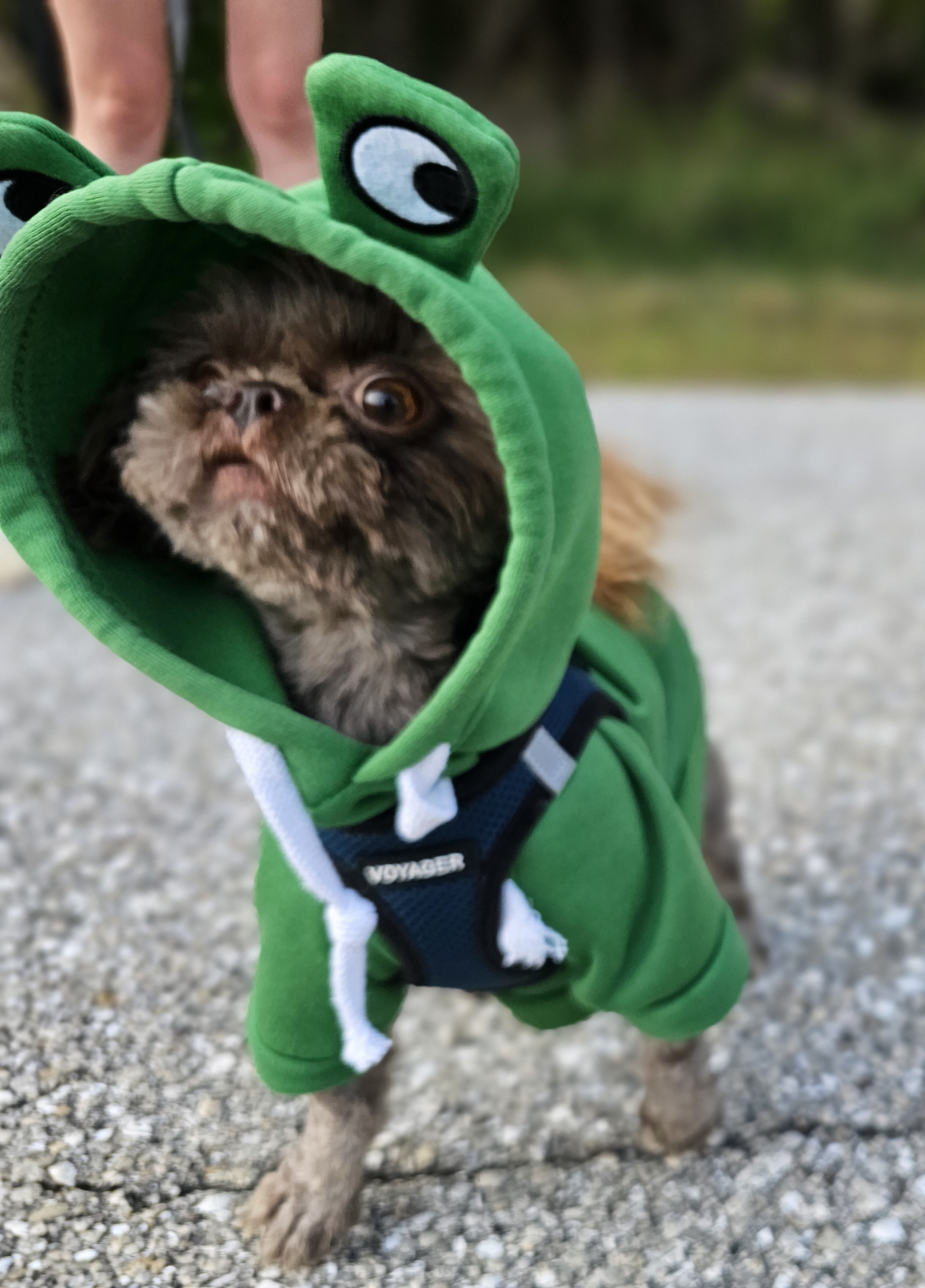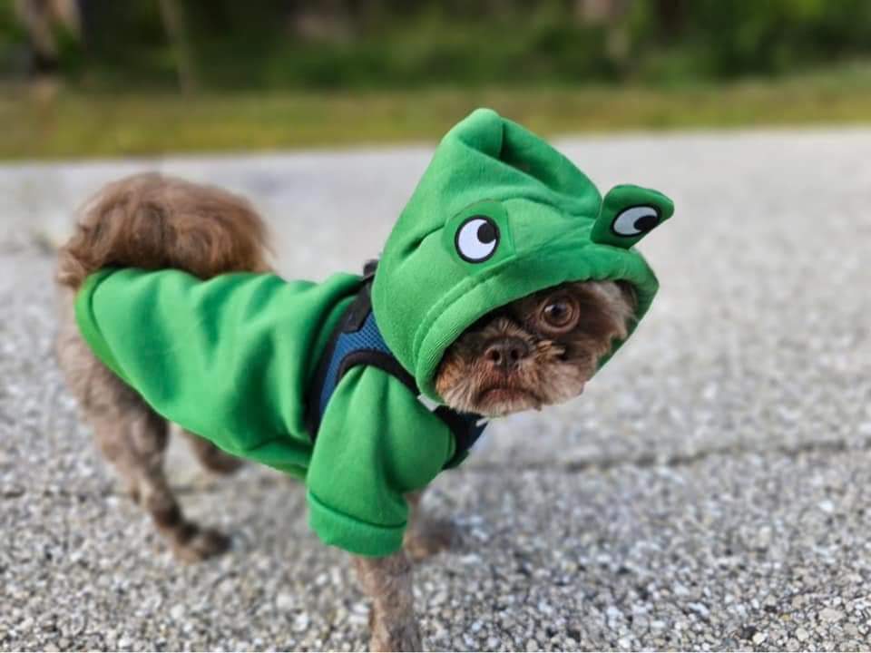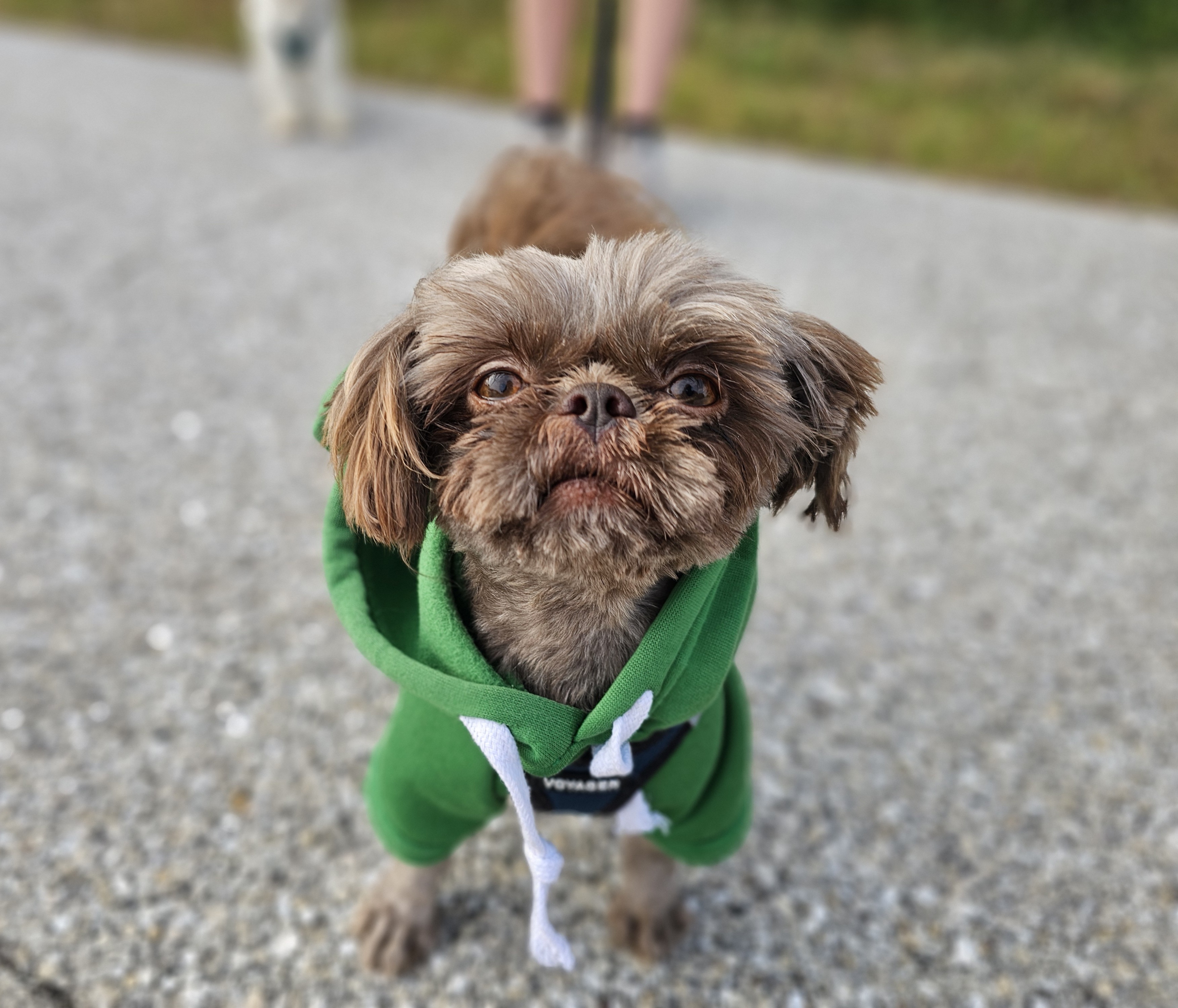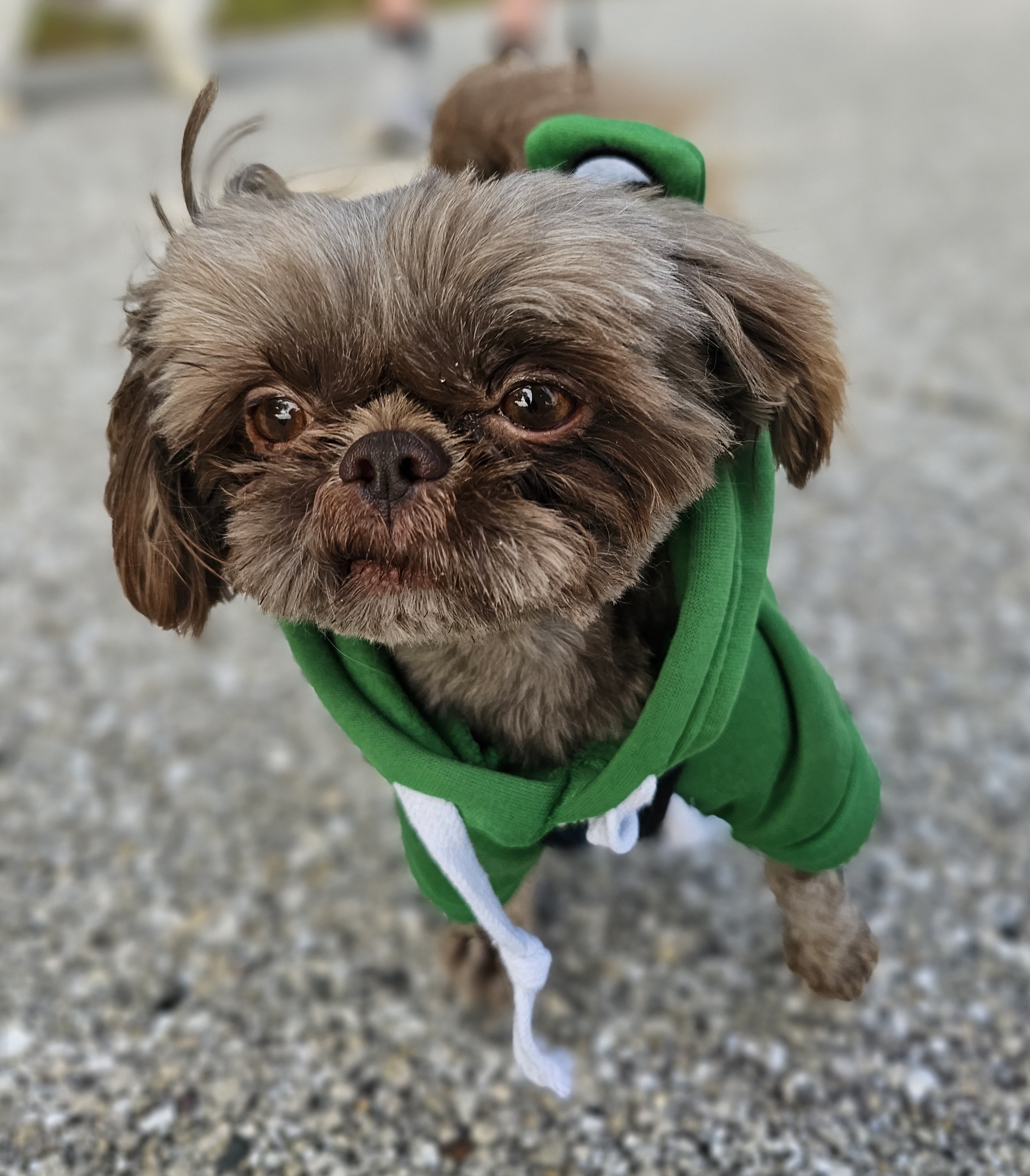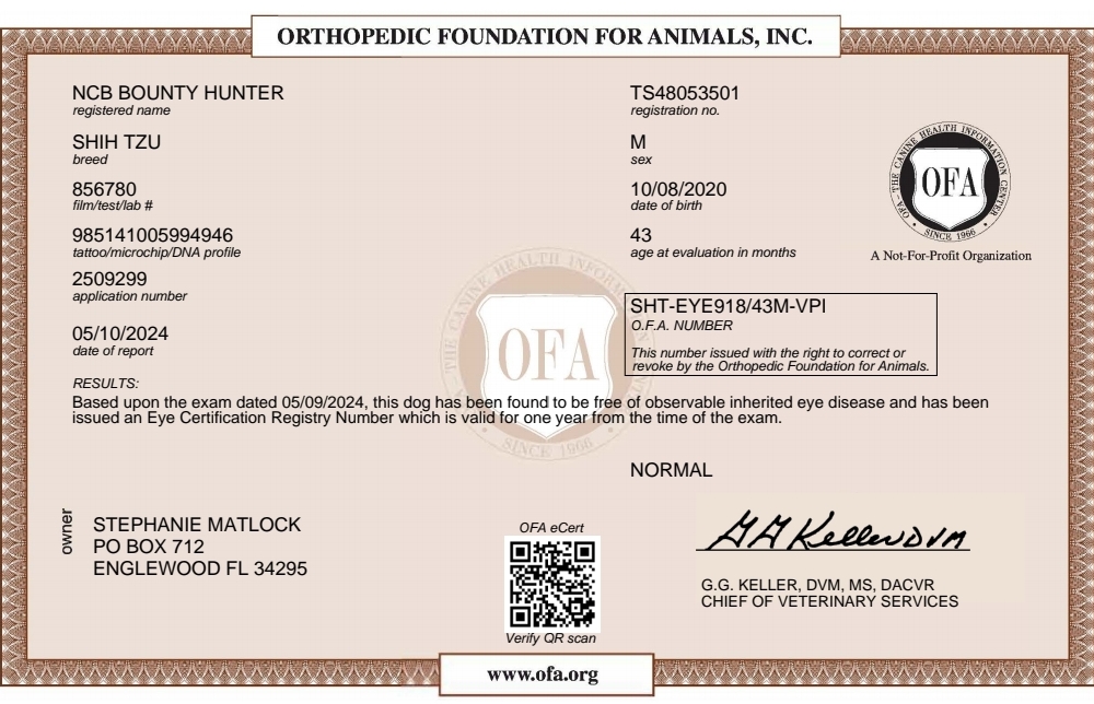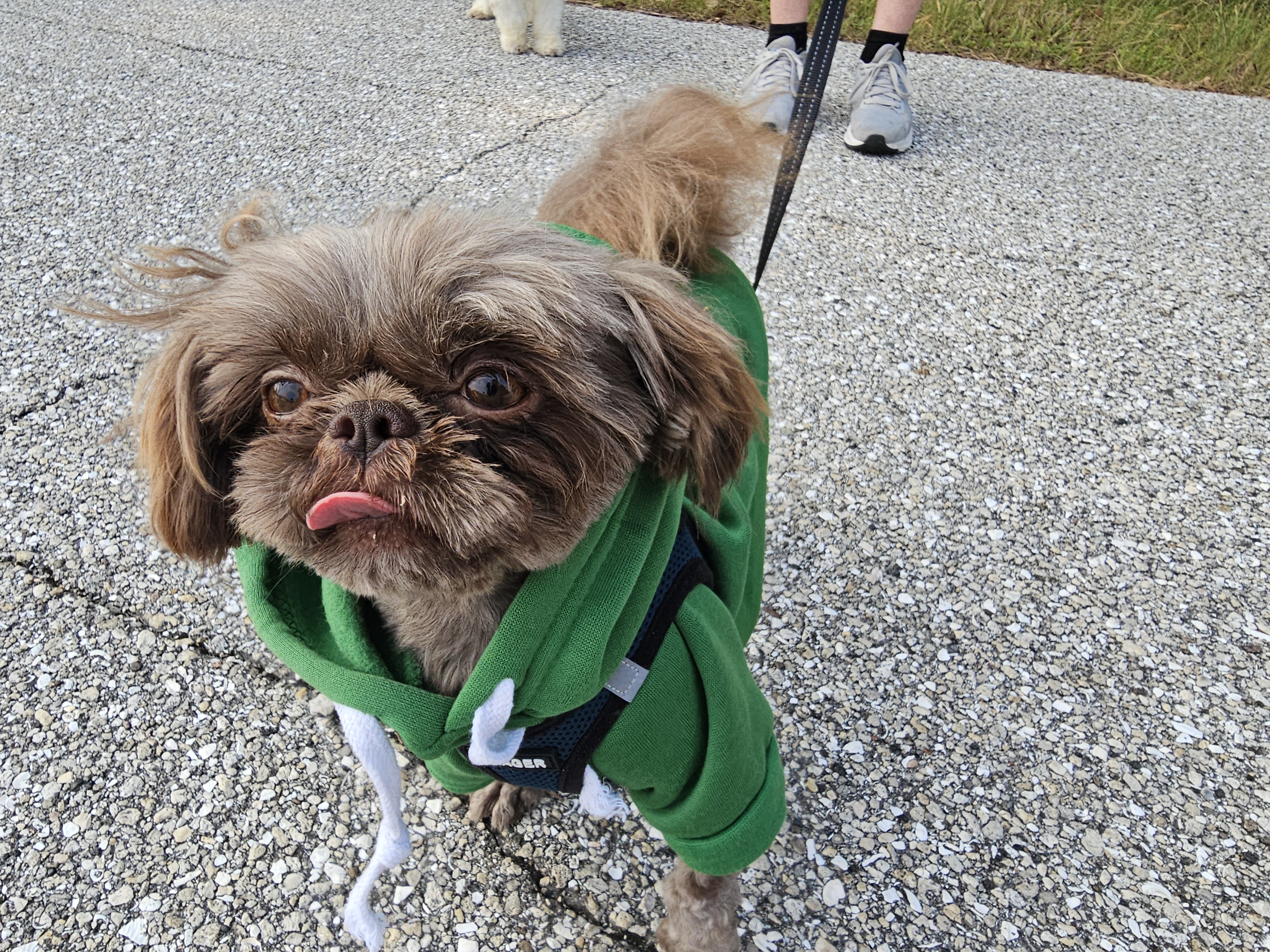 Bounty is a tiny little Shih Tzu, weighing in a couple pounds below the AKC Breed Standard weight of 9-16 lbs. He has a nice coat, a nice proportional body, a small frame, beautiful eyes, and open nostrils for good breathing.
