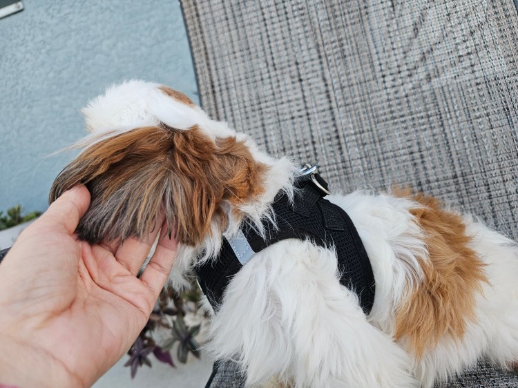 She is a quiet, mild girl. She can be a little meek or reserved in new places or with new people. She isn’t the most eager adventurer, but her low energy and calm demeanor make her an ideal companion at home. She isn’t overbearing or overly energetic. She is perfectly content at home snuggling on the couch, giving momma some kisses, and playing with her toys. She is never pushy or dominant. She is even gentle with her kisses while delicately resting her paws on you! She’s just too precious! A perfect little princess pup 🐾