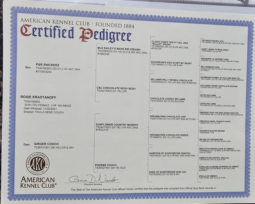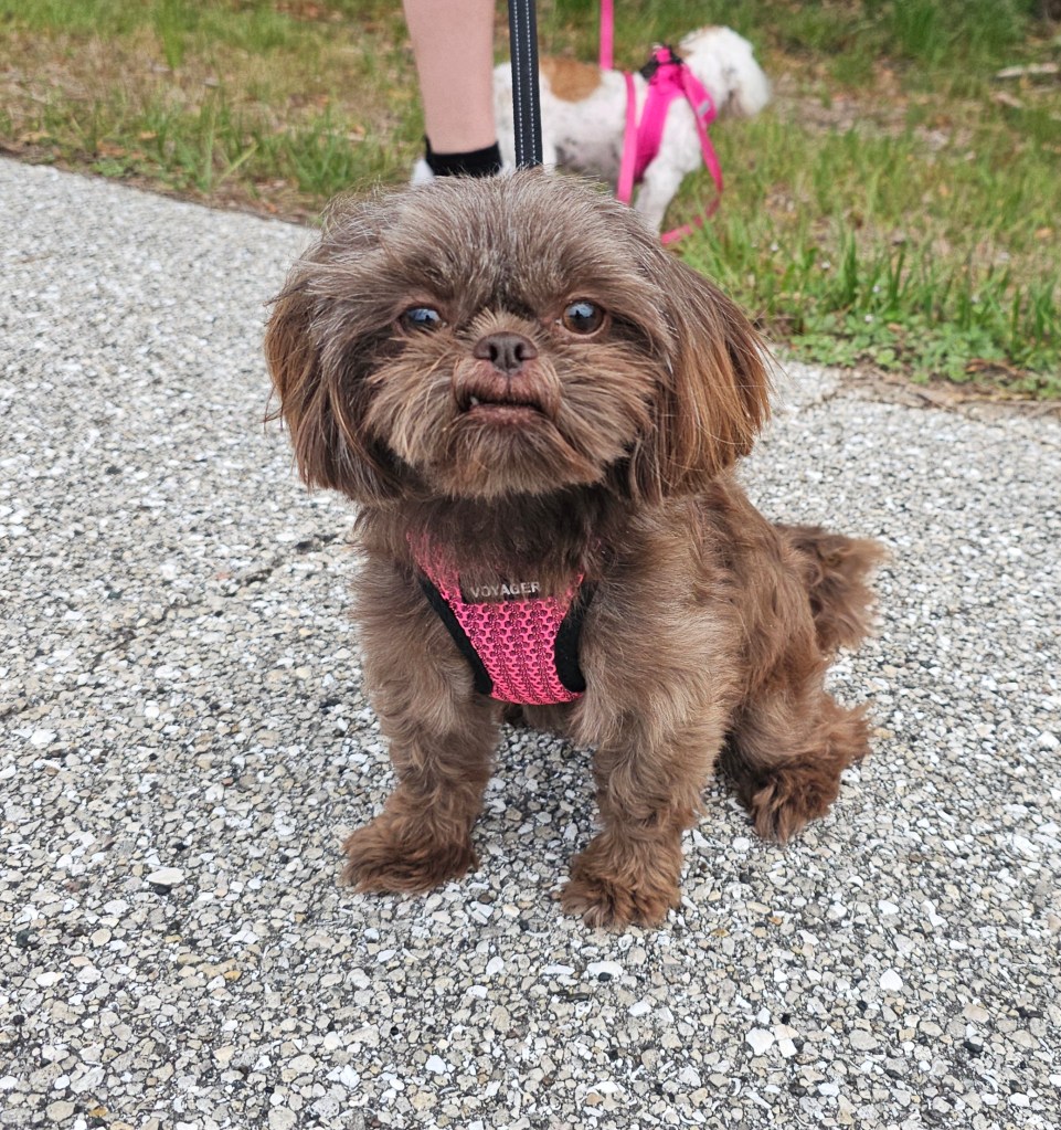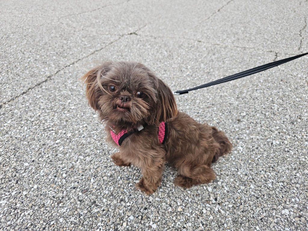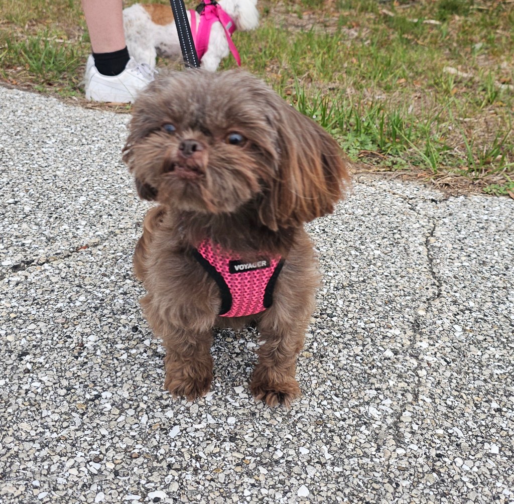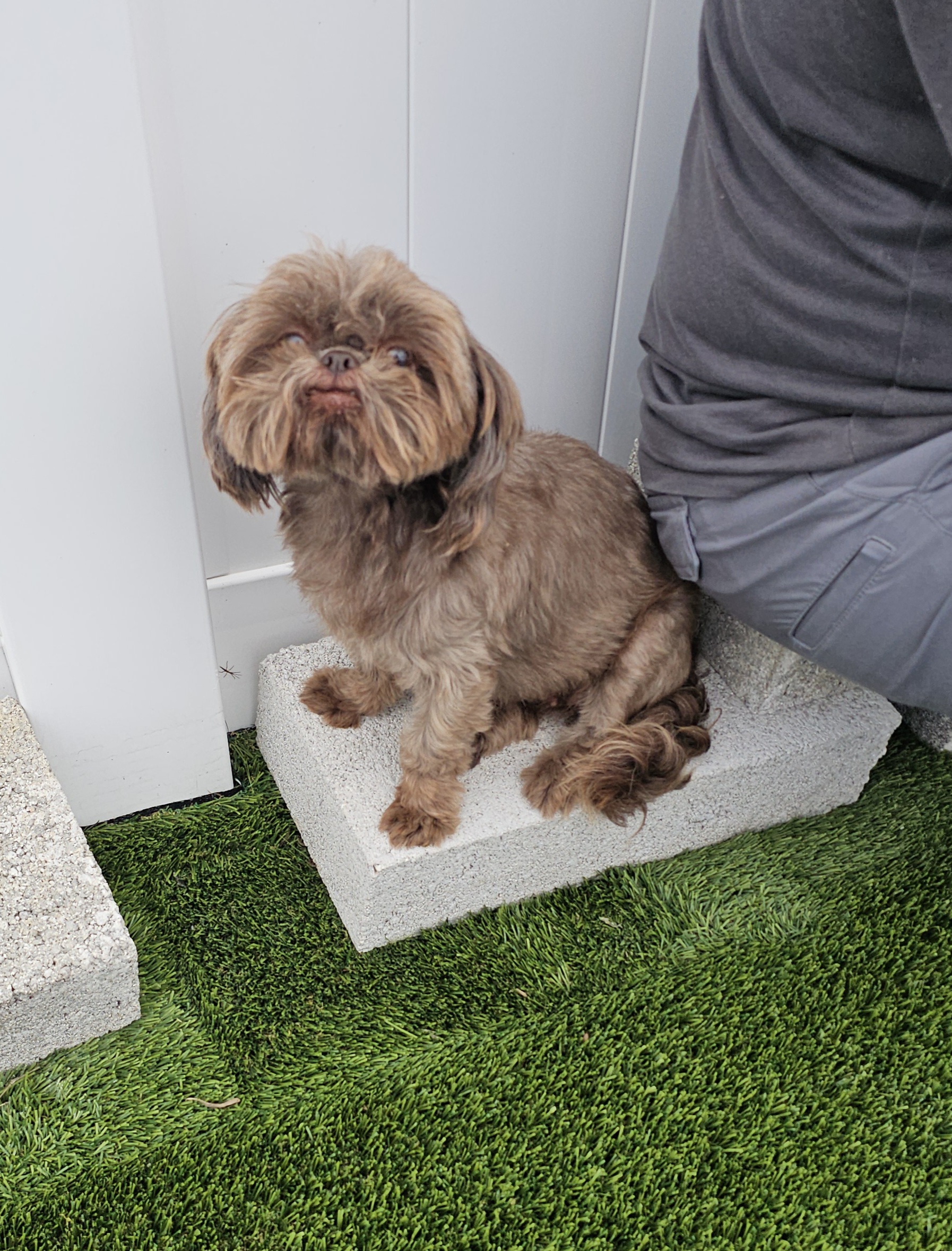 Pancake is a lovely, petite AKC Registered Shih Tzu. She is registered as Liver with a beautiful chocolate colored coat. She is a sweet, calm, mild mannered, quiet girl that loves to cuddle. She’s a little doll!