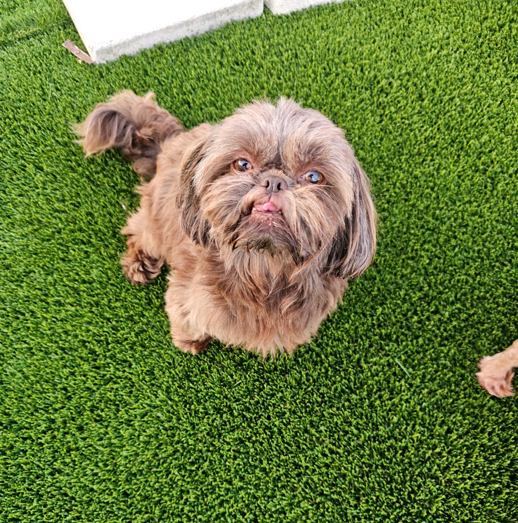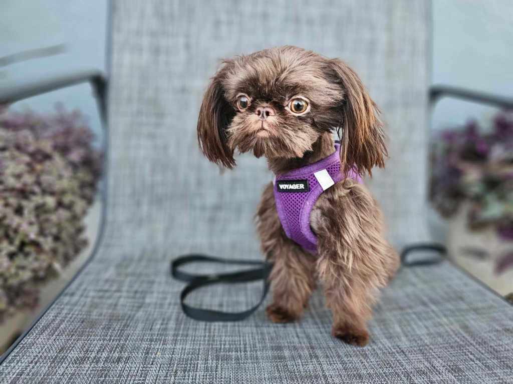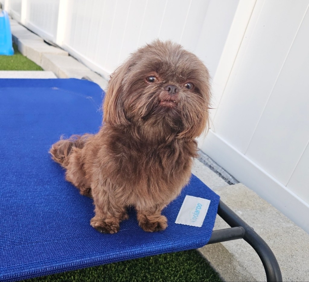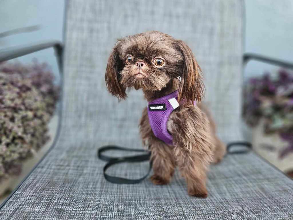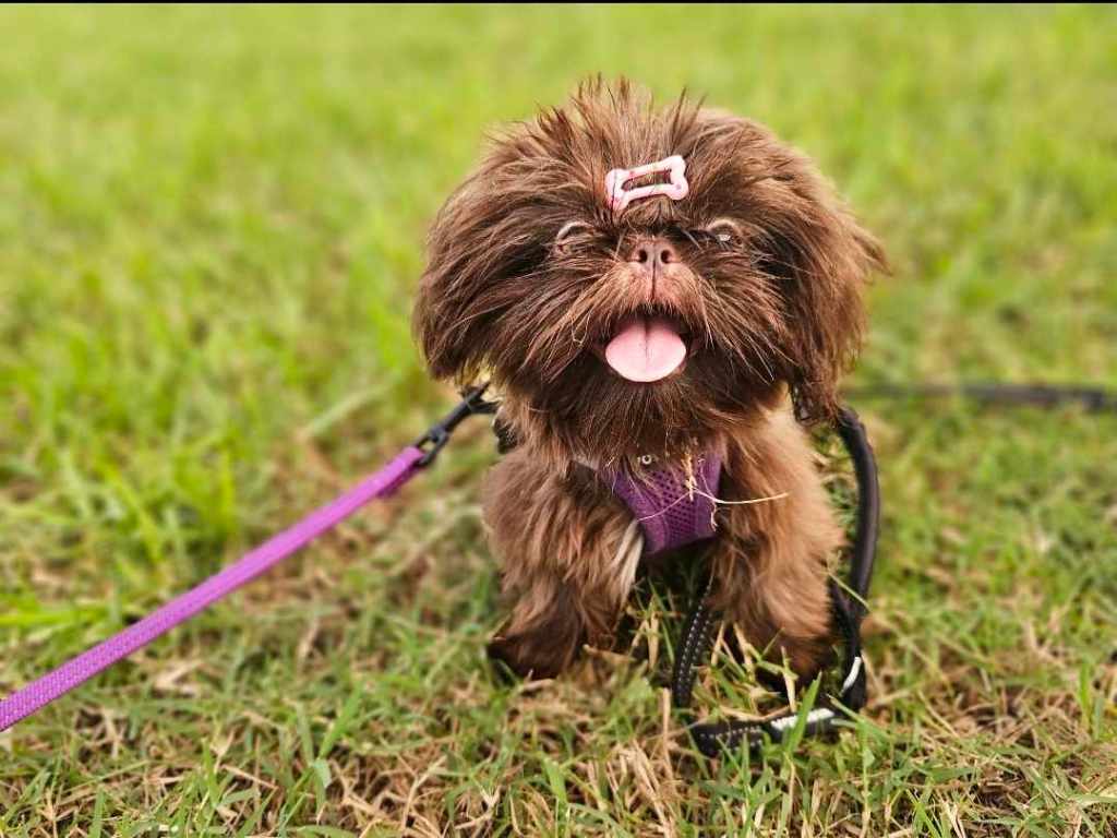 Pancake is a lovely, petite AKC Registered Shih Tzu. She is registered as Liver with a beautiful chocolate colored coat. She is a sweet, calm, mild mannered, quiet girl that loves to cuddle. She’s a little doll!