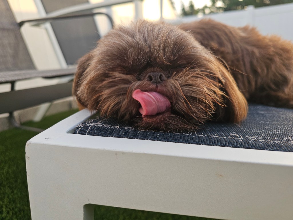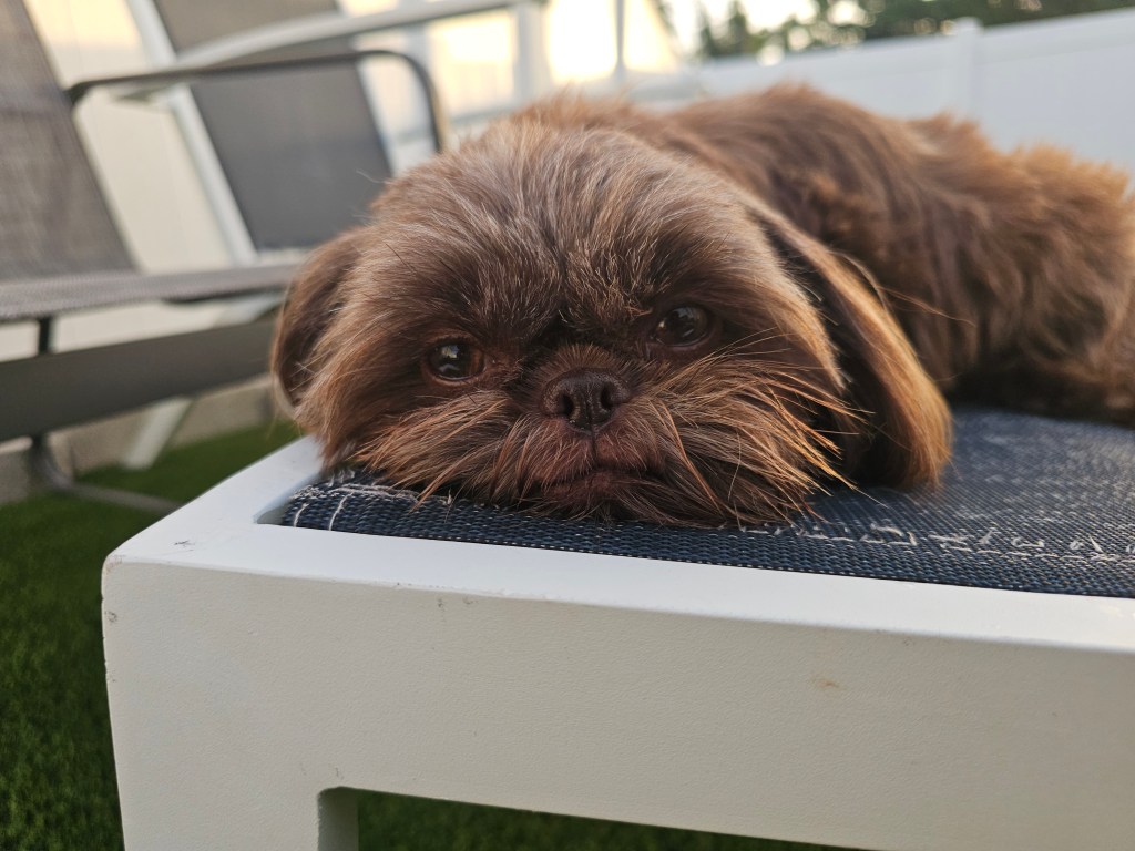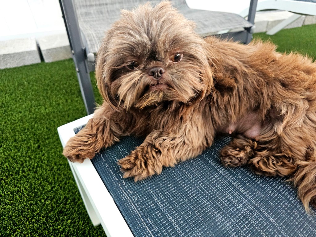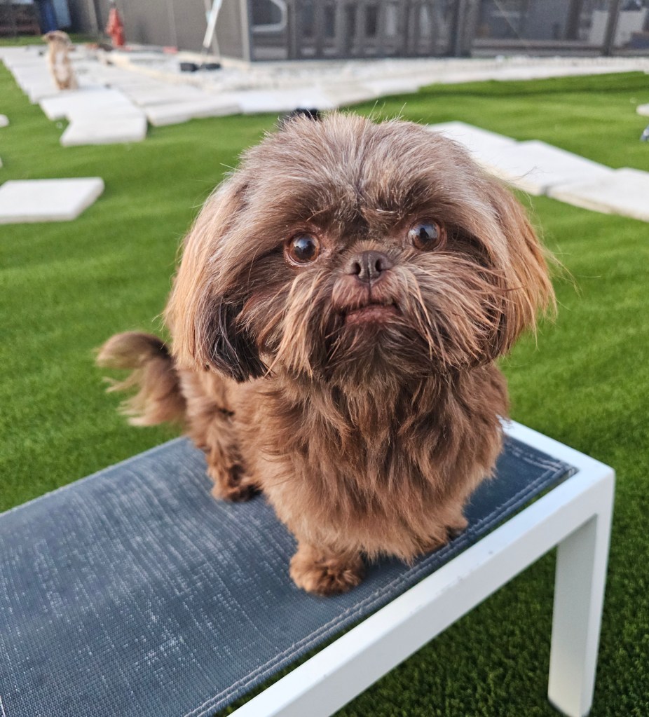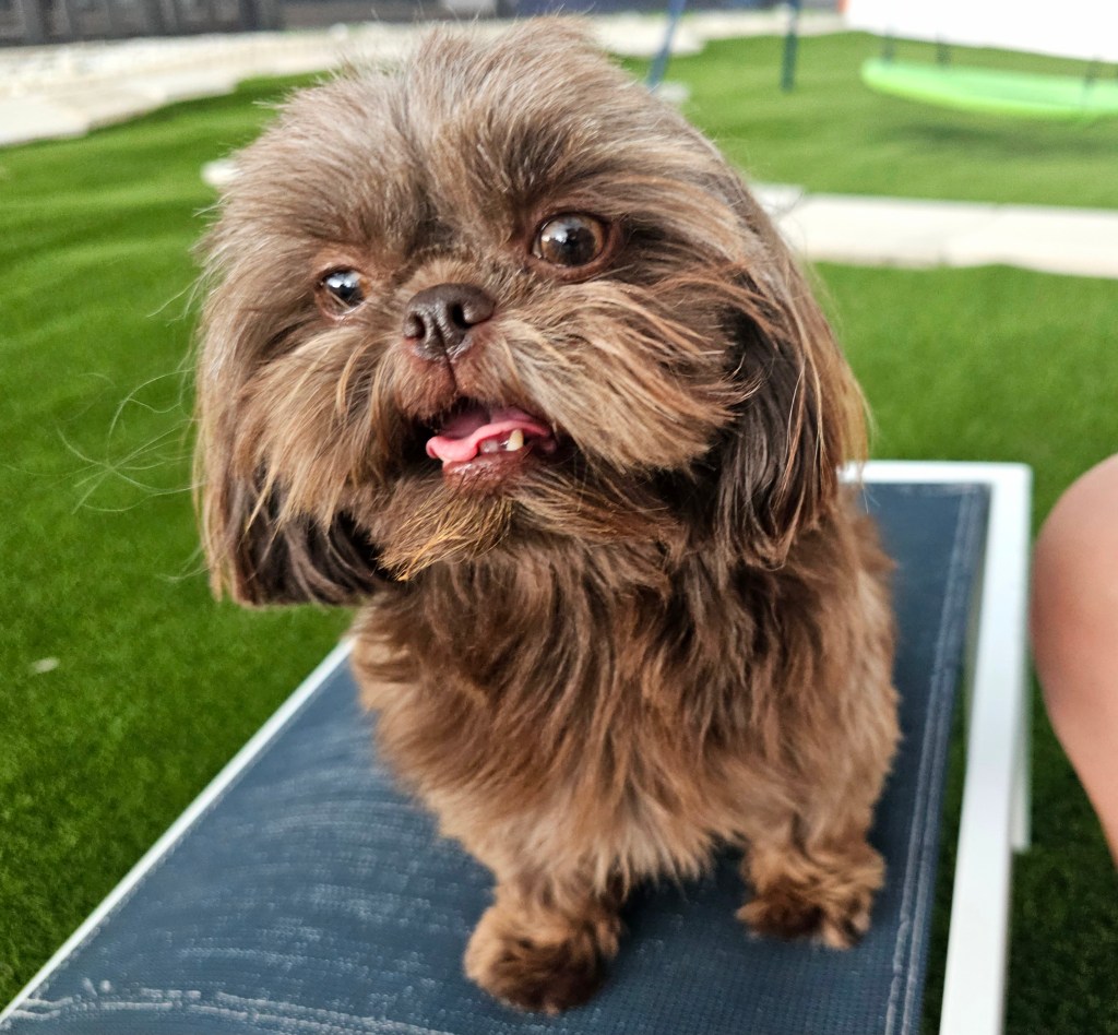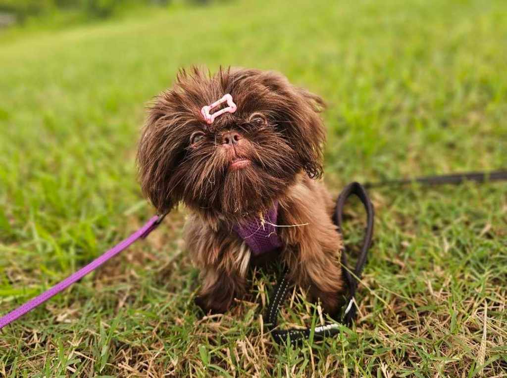 Pancake is a lovely, petite AKC Registered Shih Tzu. She is registered as Liver with a beautiful chocolate colored coat. She is a sweet, calm, mild mannered, quiet girl that loves to cuddle. She’s a little doll!