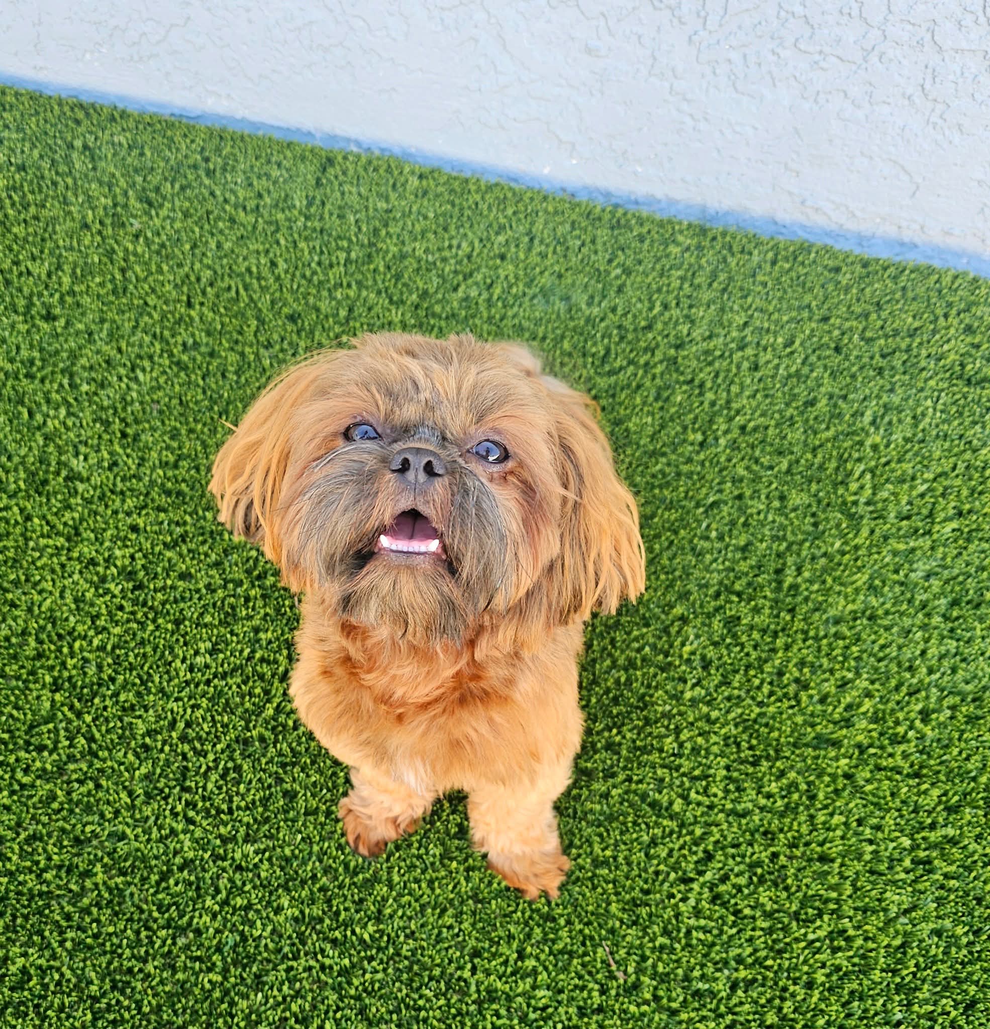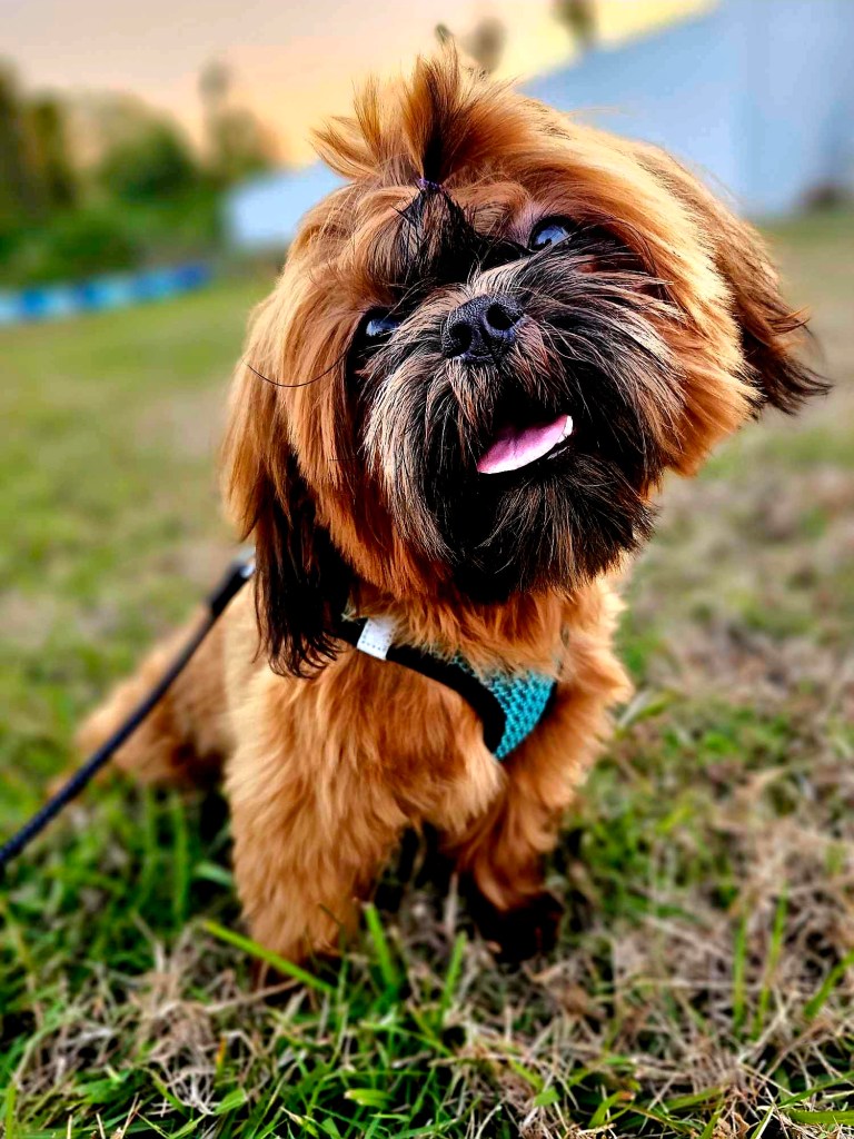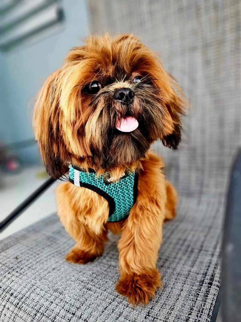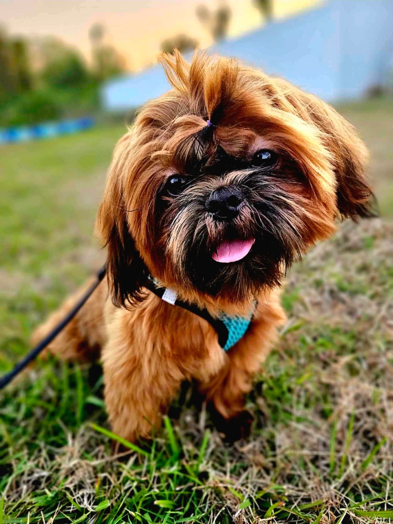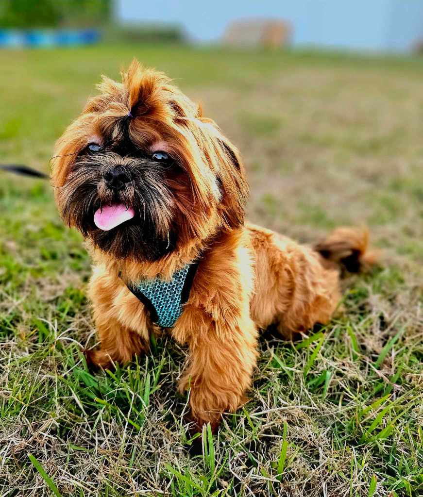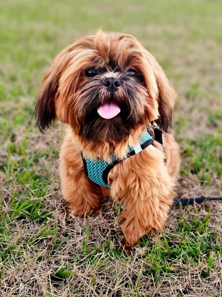 Rougarou is an absolutely stunning red Shih Tzu with a black mask. He’s on the smaller end of the AKC Breed Standard.