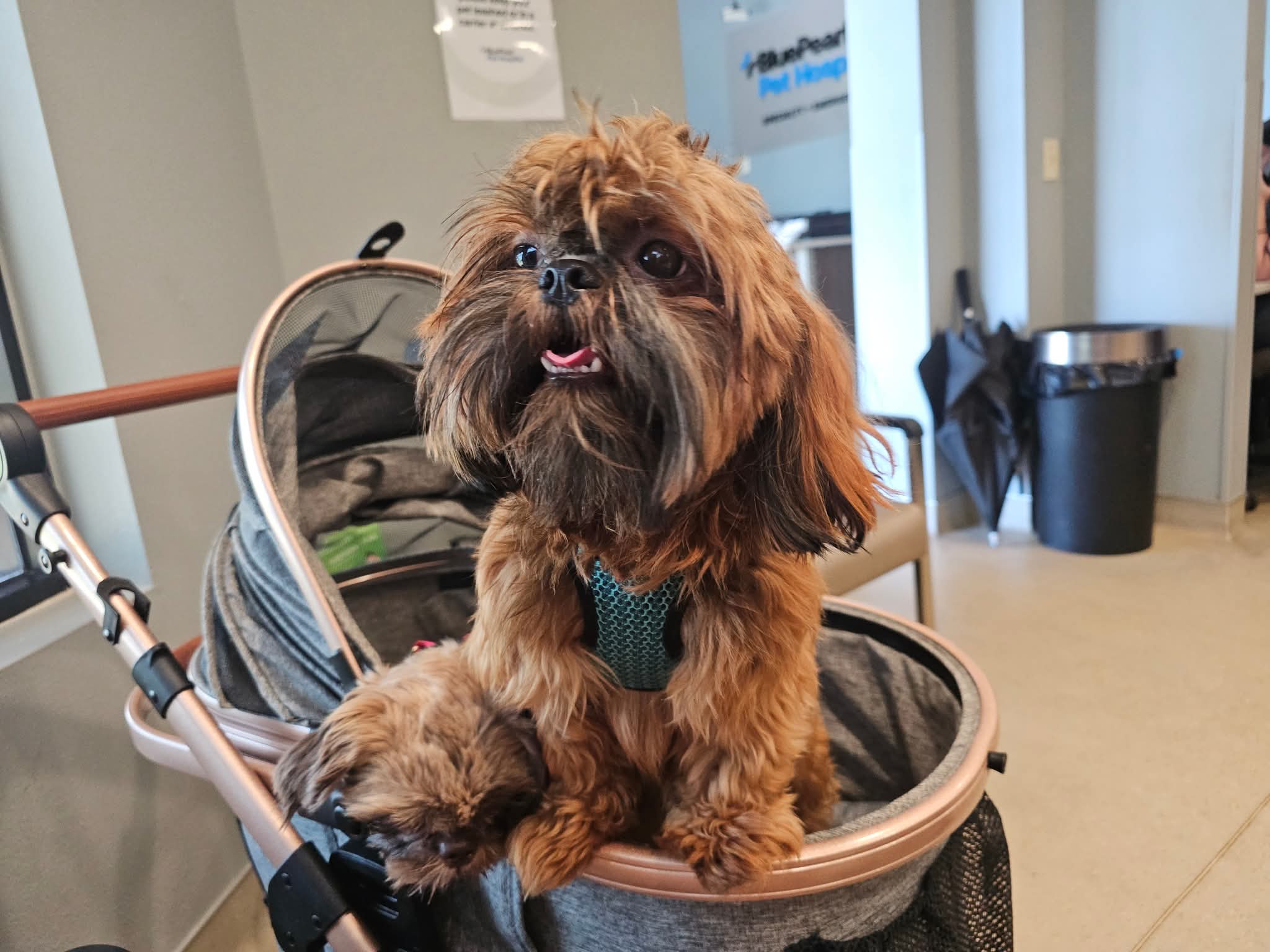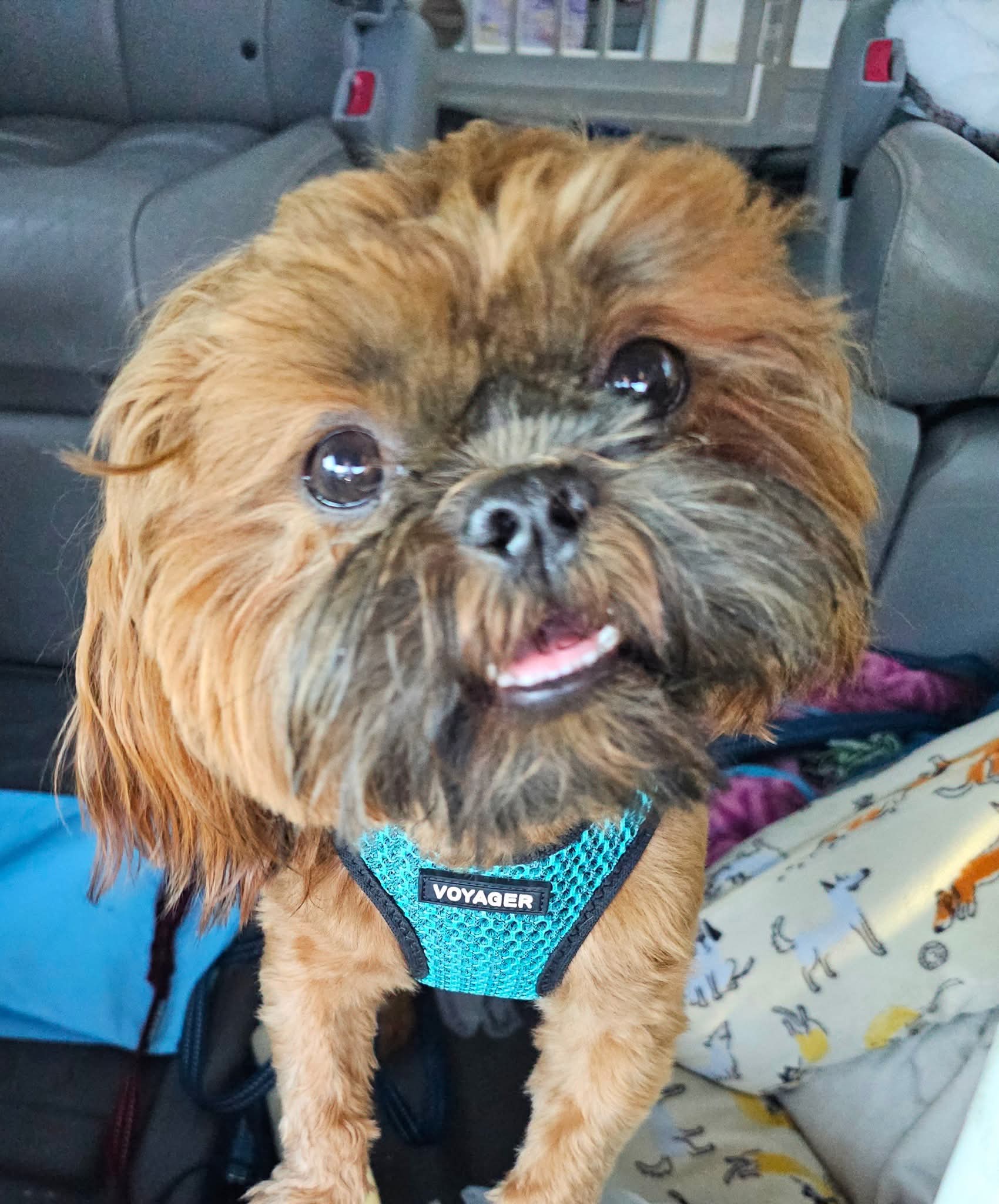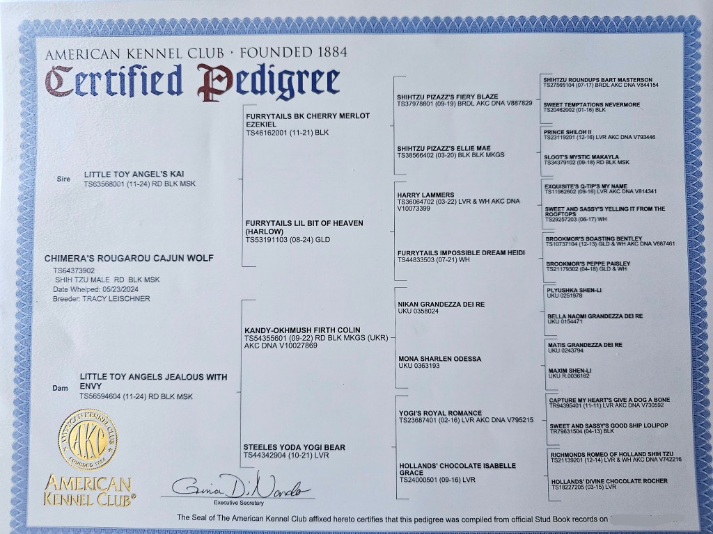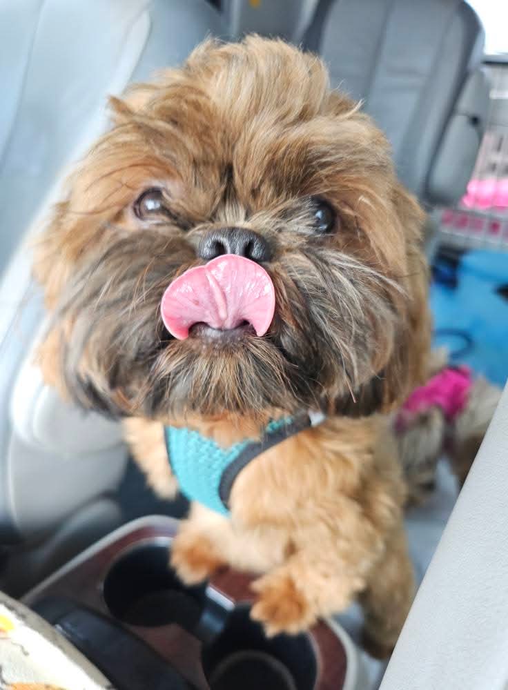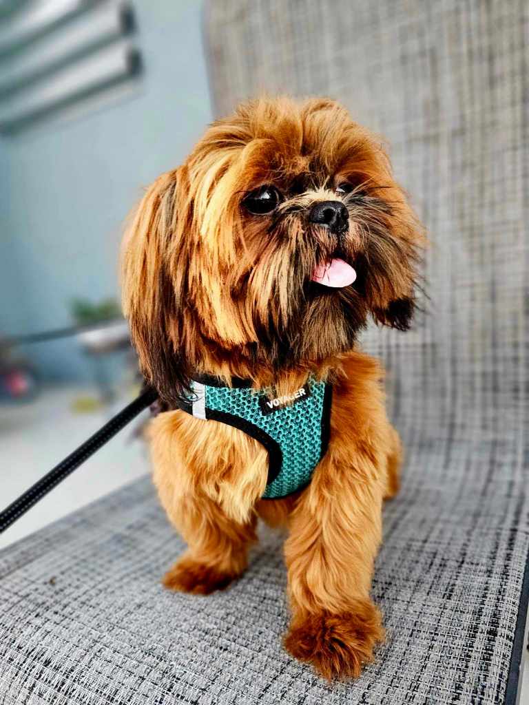 Rougarou is an absolutely stunning red Shih Tzu with a black mask. He’s on the smaller end of the AKC Breed Standard.