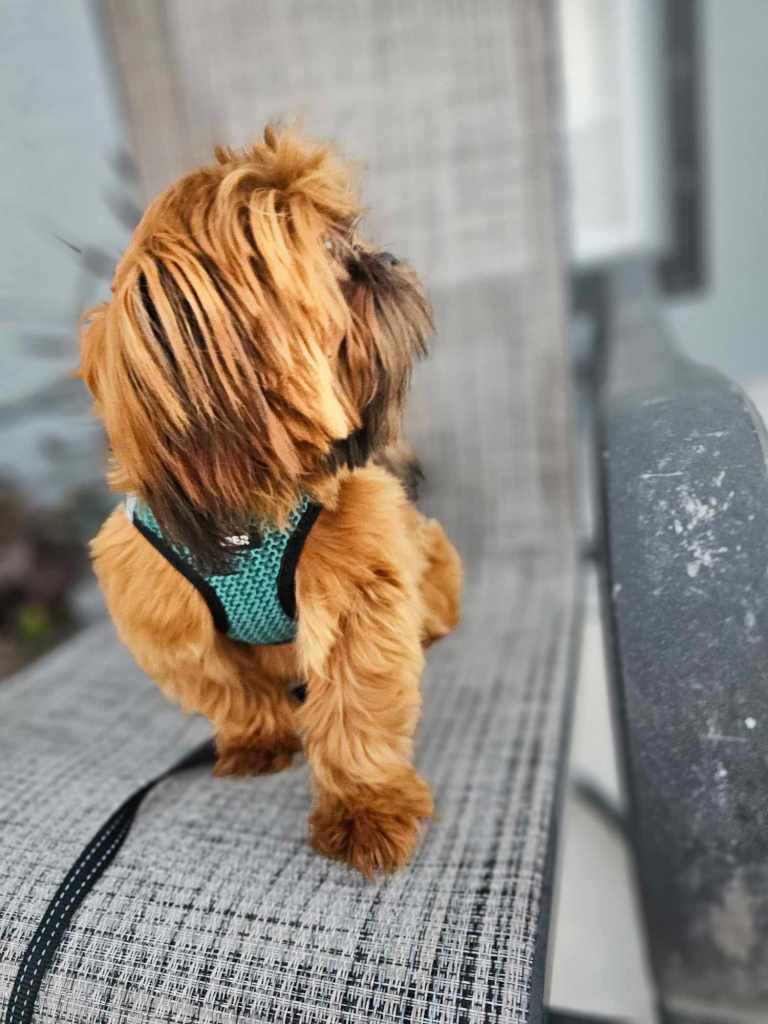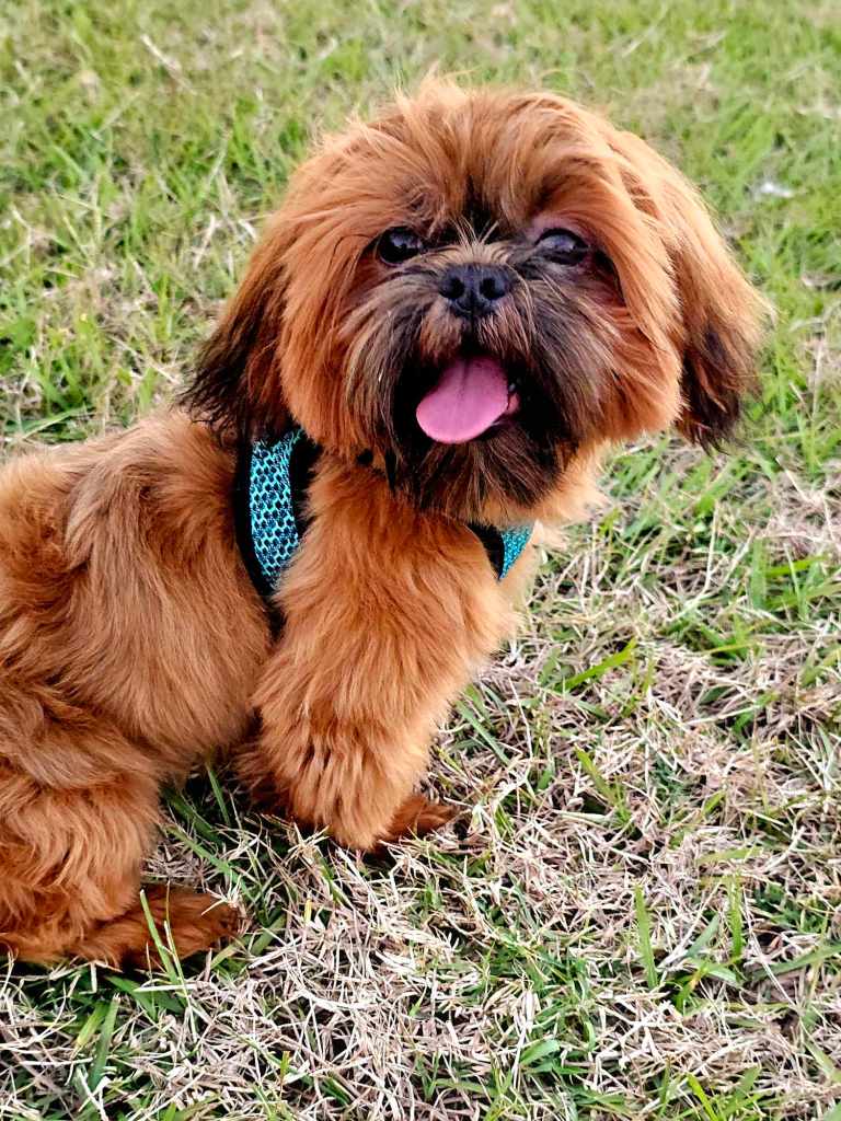 His bright rich red color really stands out in a crowd! His sweet nature makes him one of the (many) favorites here at Chimera Shih Tzu.