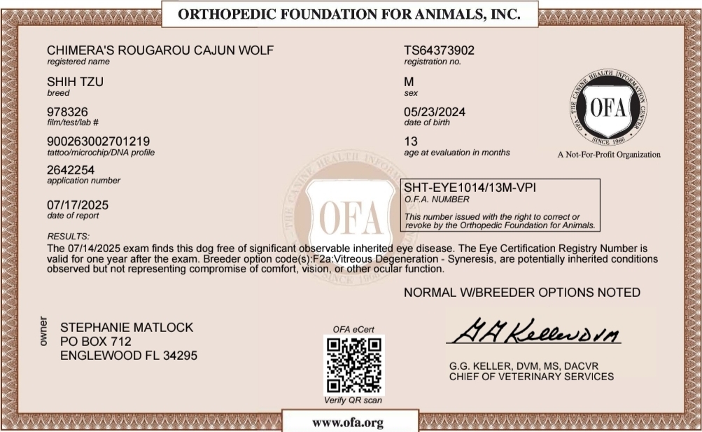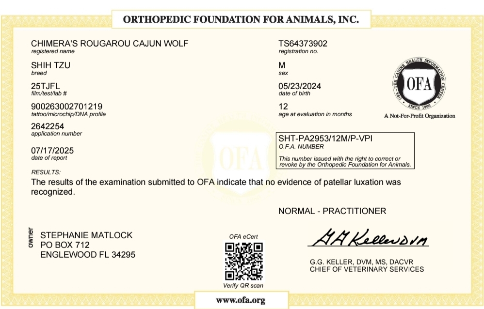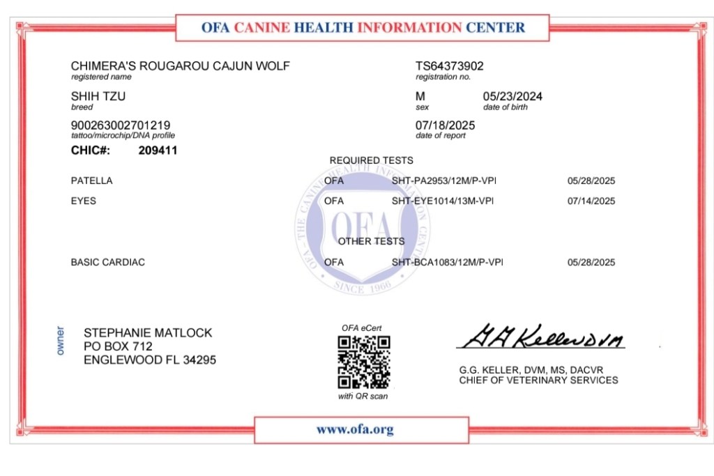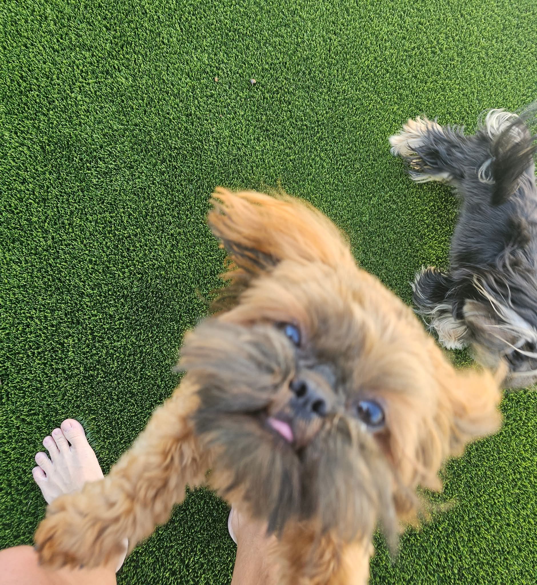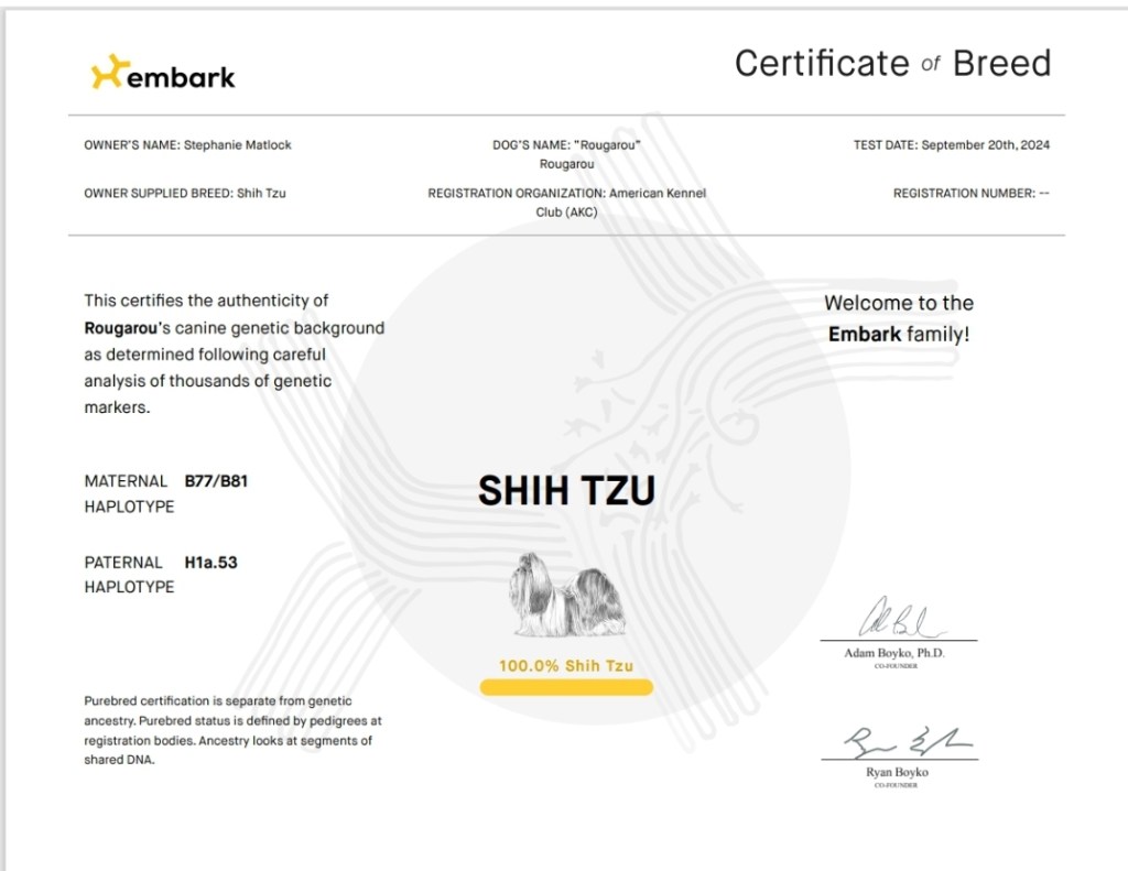 He is well put together with the breed features you’d expect in a Shih Tzu. He is a lively, energetic, outgoing young boy. He is very social and gets along with everyone. He’s easy to please and very entertaining! Roo is very smart and interactive. We enjoy him a lot.