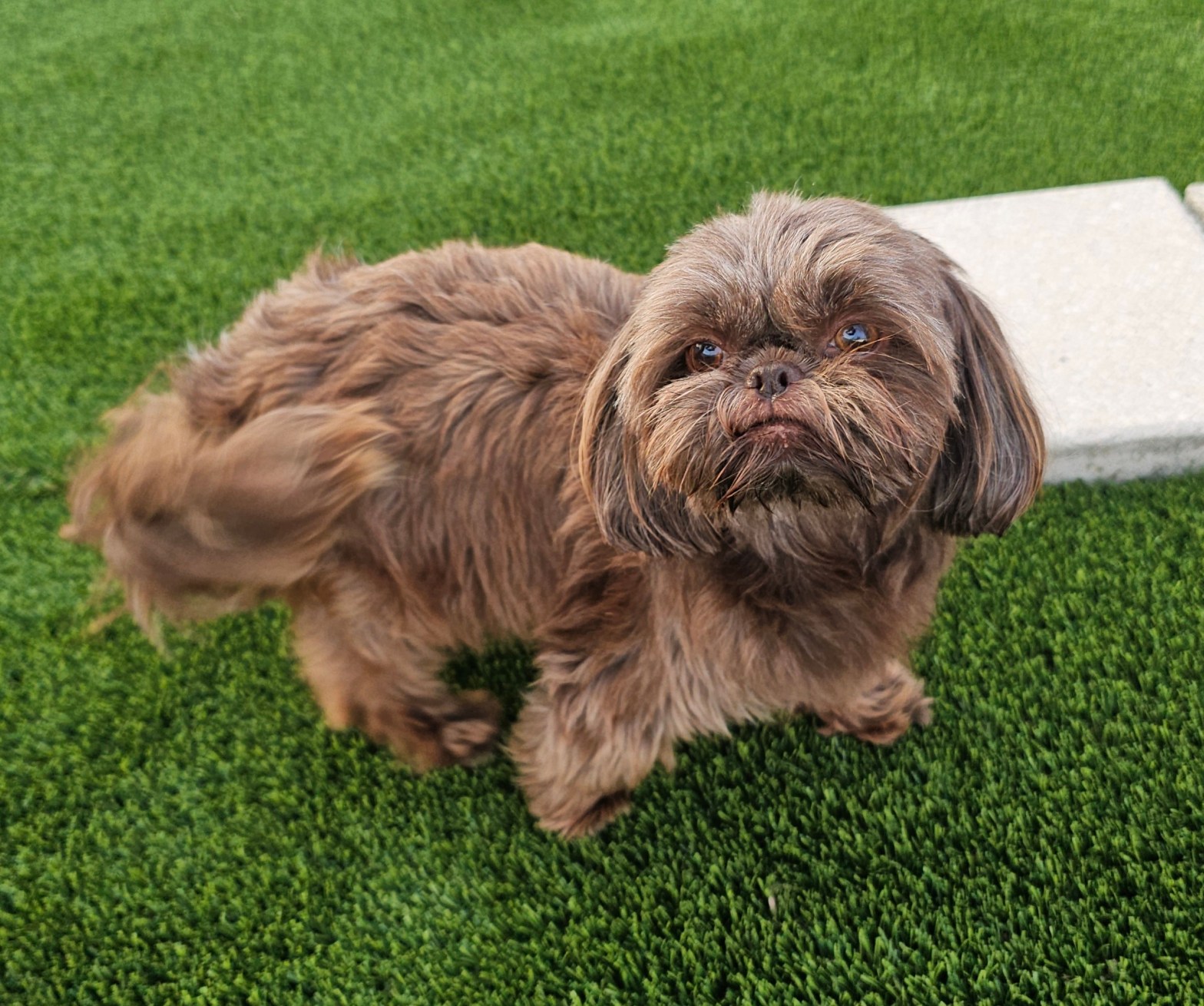 Beowulf is a lovable, 6 lbs chocolate Shih Tzu selected for a breeding program emphasizing health, temperament and socialization.