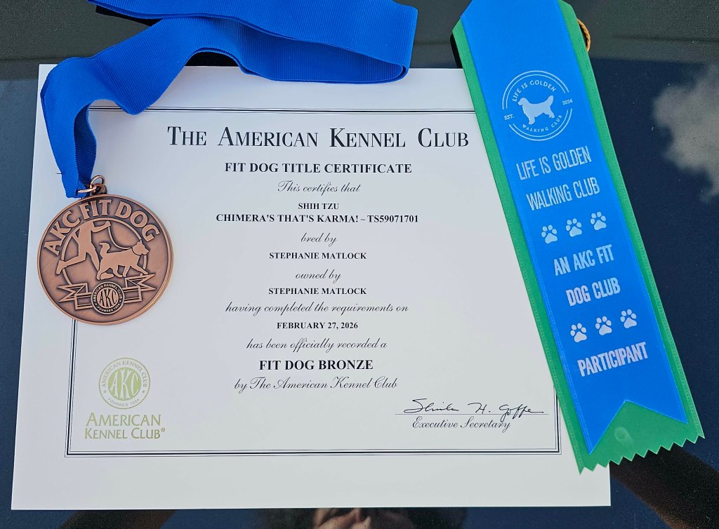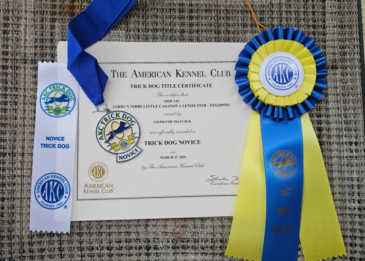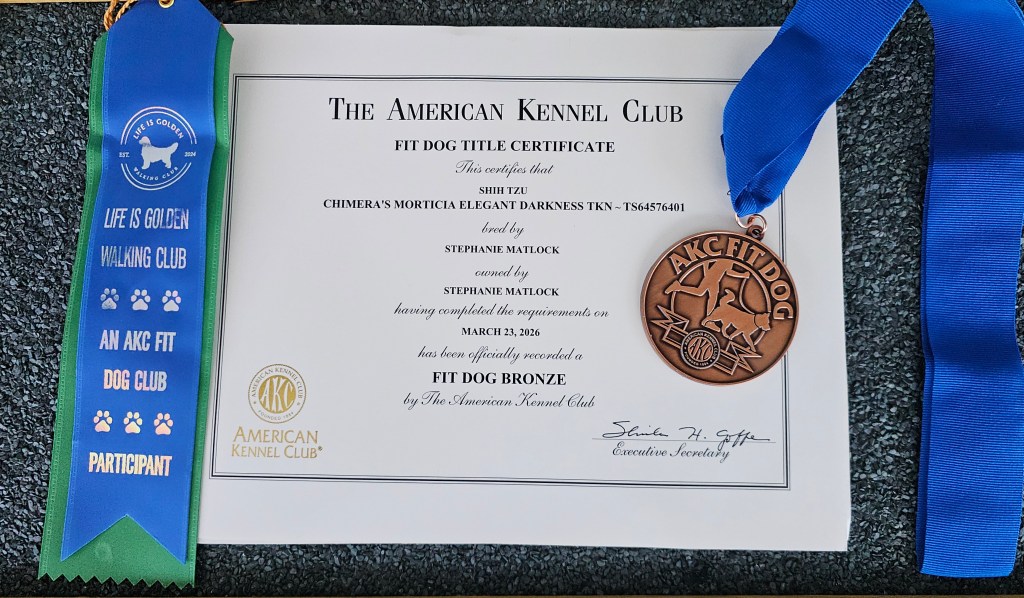 American Kennel Club AKC titles are official abbreviations added to a dog’s registered name, recognizing achievements in dog sports such as obedience, agility, tracking, and conformation. These titles, which can be prefixes (e.g., Champion) or suffixes (e.g., Companion Dog), are earned by qualifying in sanctioned AKC events. Key categories include obedience (CD, UD), agility (PACH, AXJ), fitness (FITB, FITG), and working roles like search and rescue. We have started earning titles in AKC Trick Dog, AKC Fit Dog, and AKC Virtual Home Manners. I would love to eventually expand into agility & more, but we are starting with these.