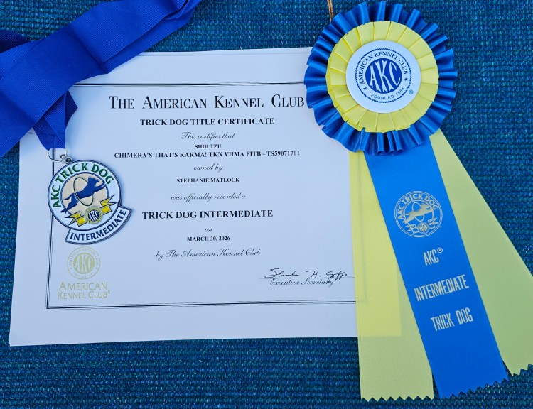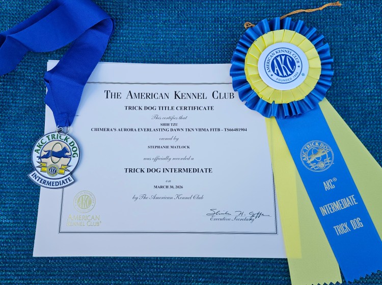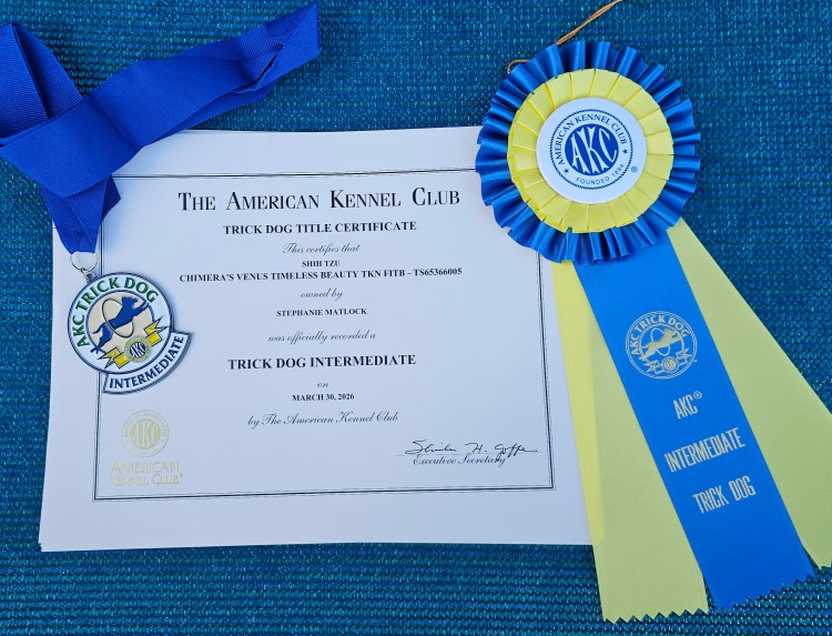American Kennel Club AKC titles are official abbreviations added to a dog’s registered name, recognizing achievements in dog sports such as obedience, agility, tracking, and conformation. These titles, which can be prefixes (e.g., Champion) or suffixes (e.g., Companion Dog), are earned by qualifying in sanctioned AKC events. Key categories include obedience (CD, UD), agility (PACH, AXJ), fitness (FITB, FITG), and working roles like search and rescue. We have started earning titles in AKC Trick Dog, AKC Fit Dog, and AKC Virtual Home Manners. I would love to eventually expand into agility & more, but we are starting with these.