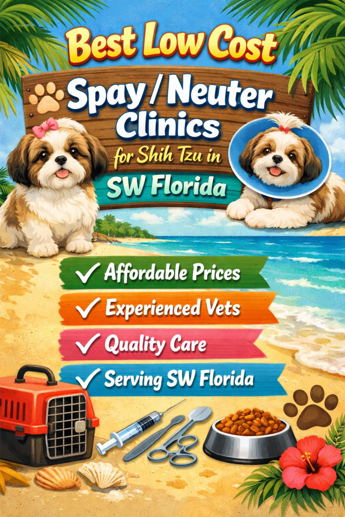 SW Florida Spay Neuter Clinic in Port Charlotte is my favorite for simple, routine spays & neuters. They are very low cost, extremely efficient, friendly, and take excellent care of the babies! My Shih Tzus come home feeling relatively good with the tiniest incisions. They aren’t heavily drugged and they aren’t in excessive discomfort – which would be understandable, considering the surgery they are waking up from, but somehow SW Florida Spay Neuter Clinic uses just enough sedation, pain control, and minimally invasive surgery techniques.